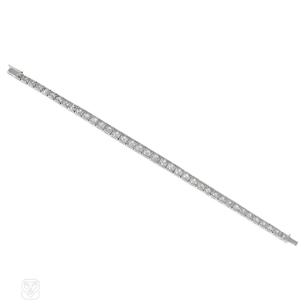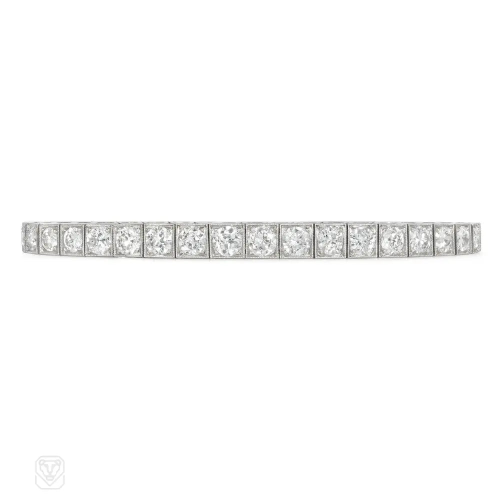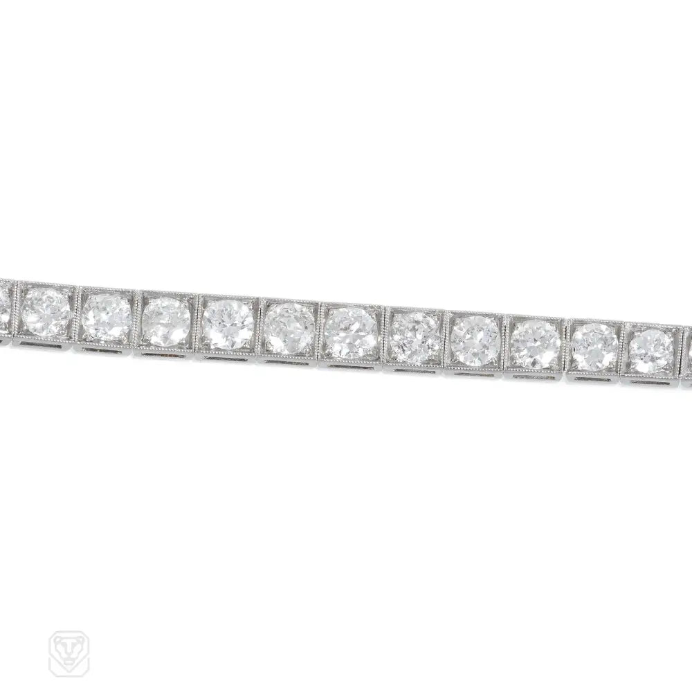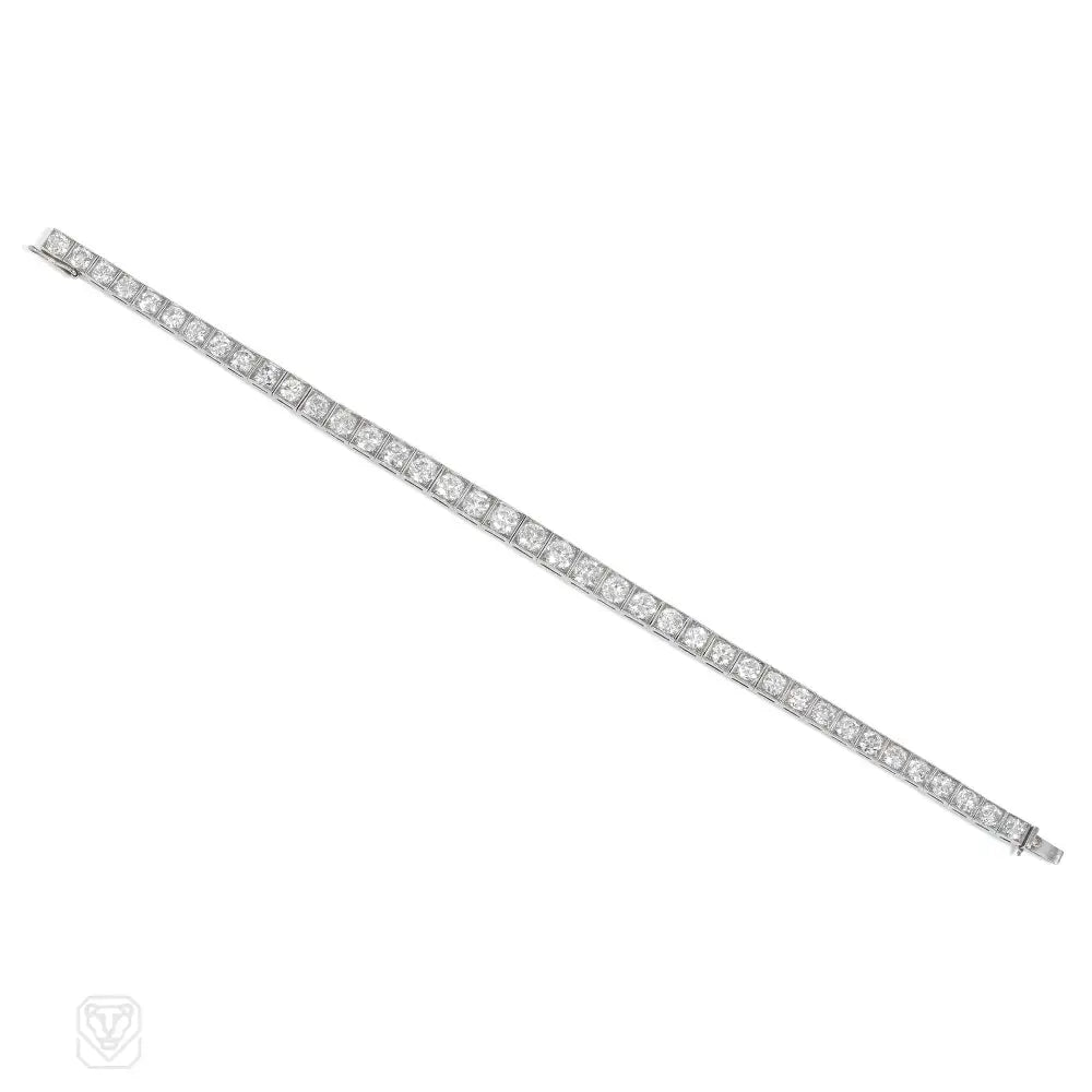 An Art Deco old European-cut diamond line bracelet of tapering design, in platinum. Numbered #20990. I/J color, SI, Atw 7.00 cts.
