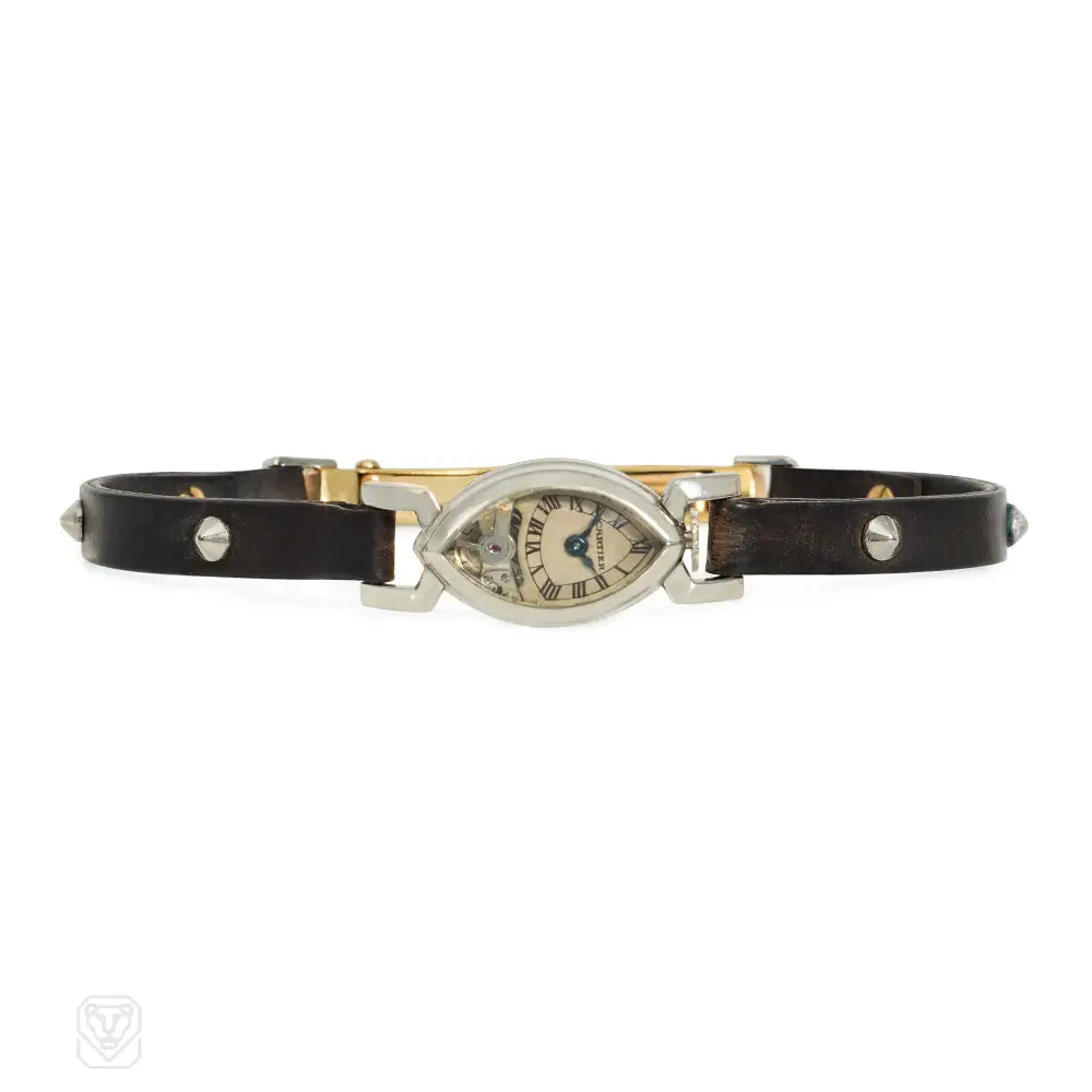 Cartier, France "Amande" navette-shaped Art Deco watch