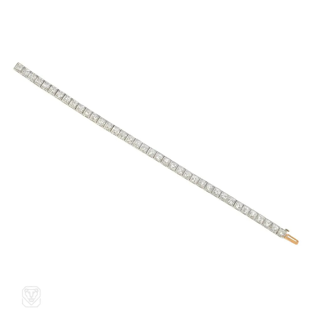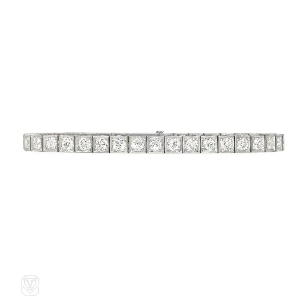 An Art Deco box-set diamond line bracelet, in platinum. Atw diamonds 5.32 cts. Dreicer