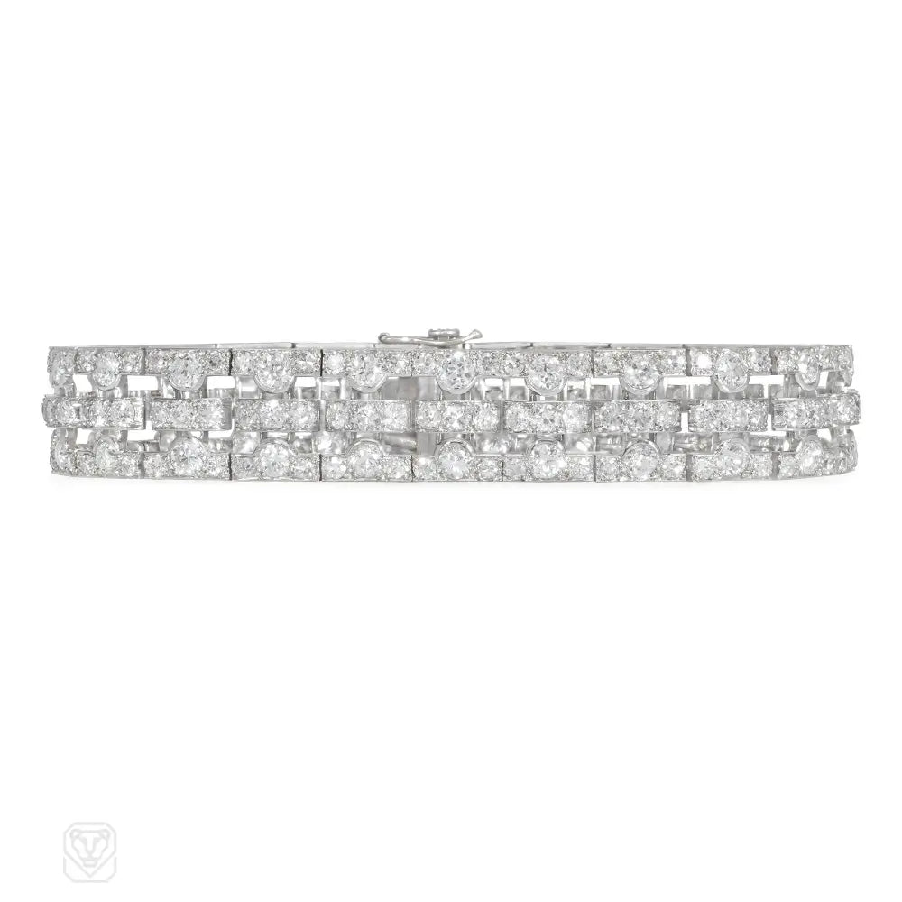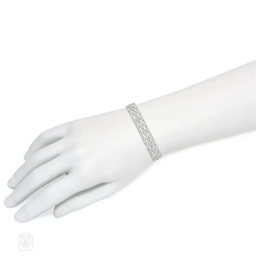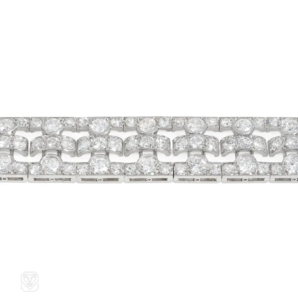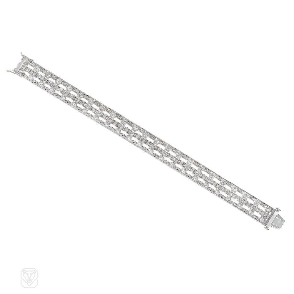 An Art Deco diamond bracelet of undulating lattice-like design, in platinum and 18k white gold. Atw diamonds 10.50 cts. Leon Beilin, France.