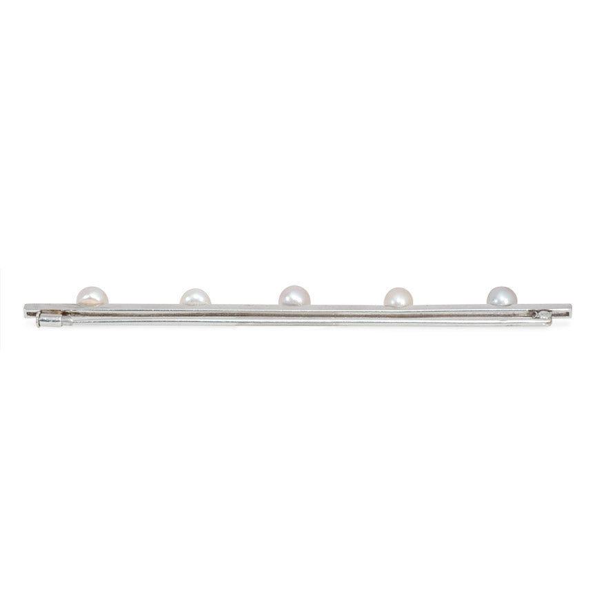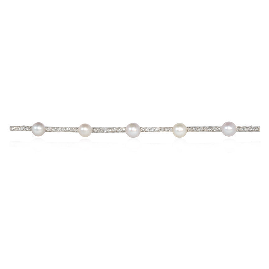 French Art Deco diamond and pearl bar brooch