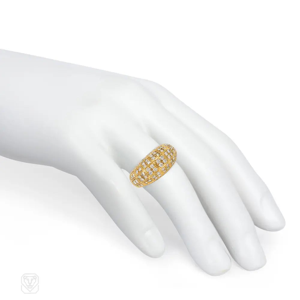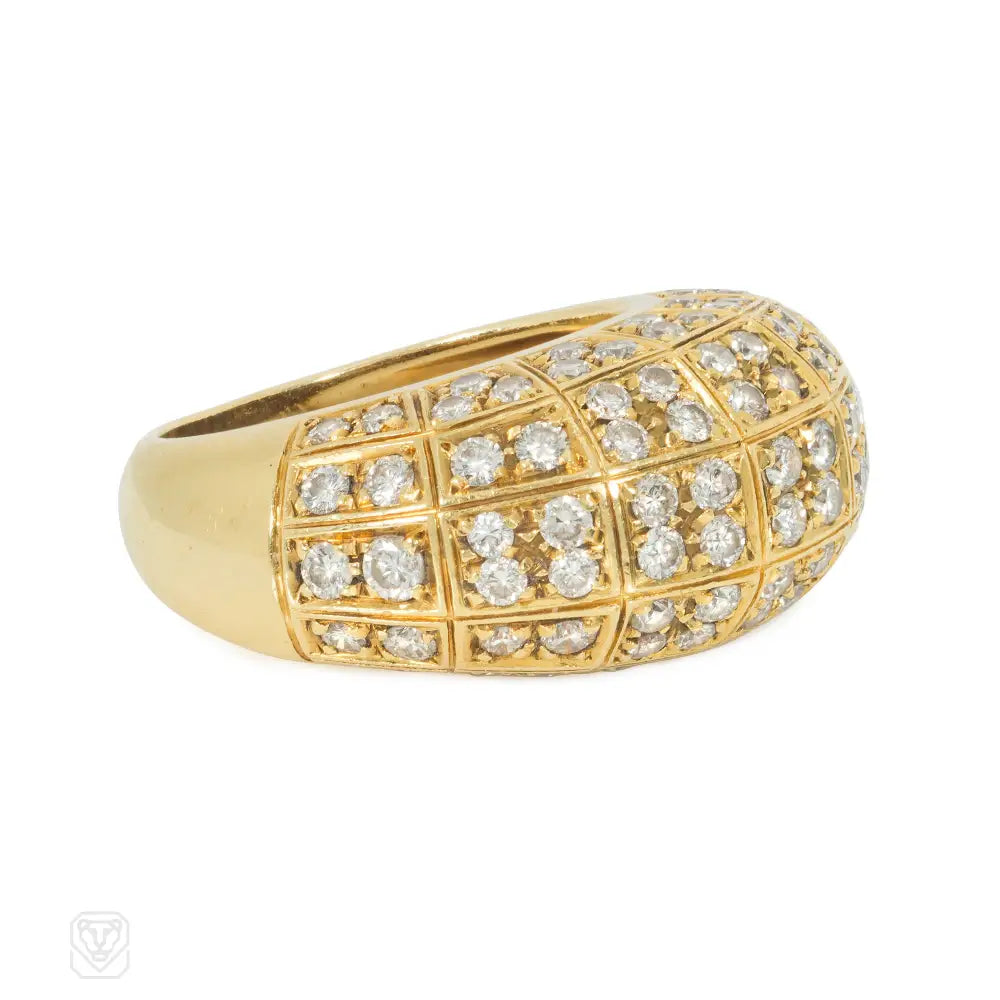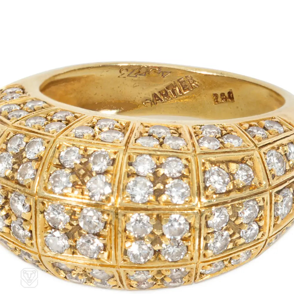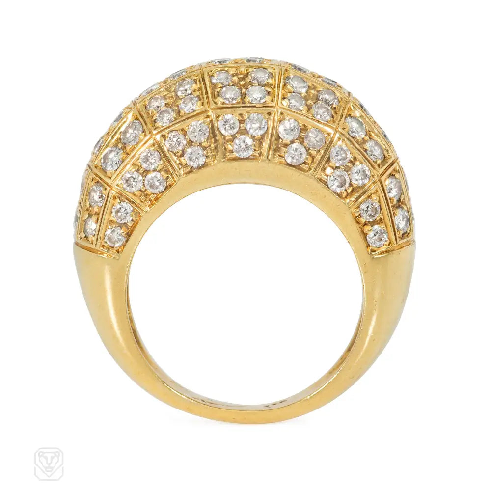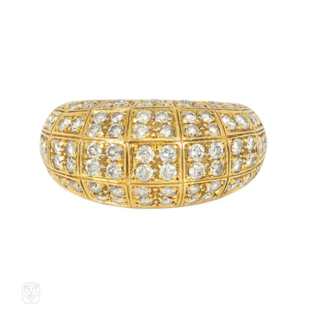 A Gold bombé ring set with quatrefoil and trefoil diamond grids, in 18k. Atw diamonds 2.20 cts. Cartier, NY #40573