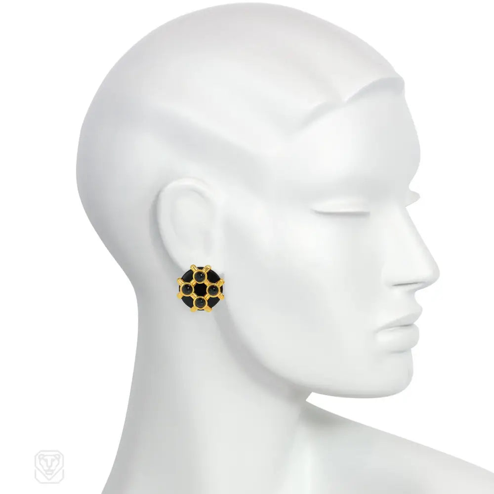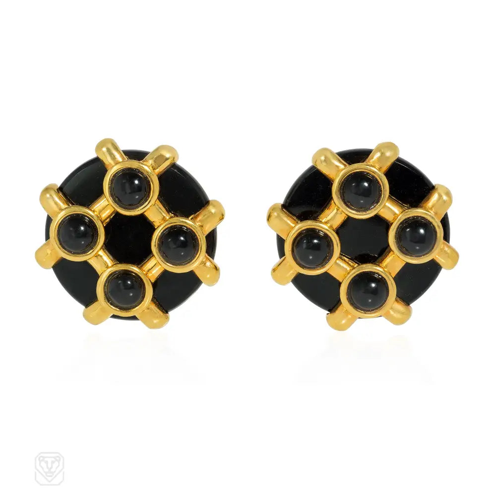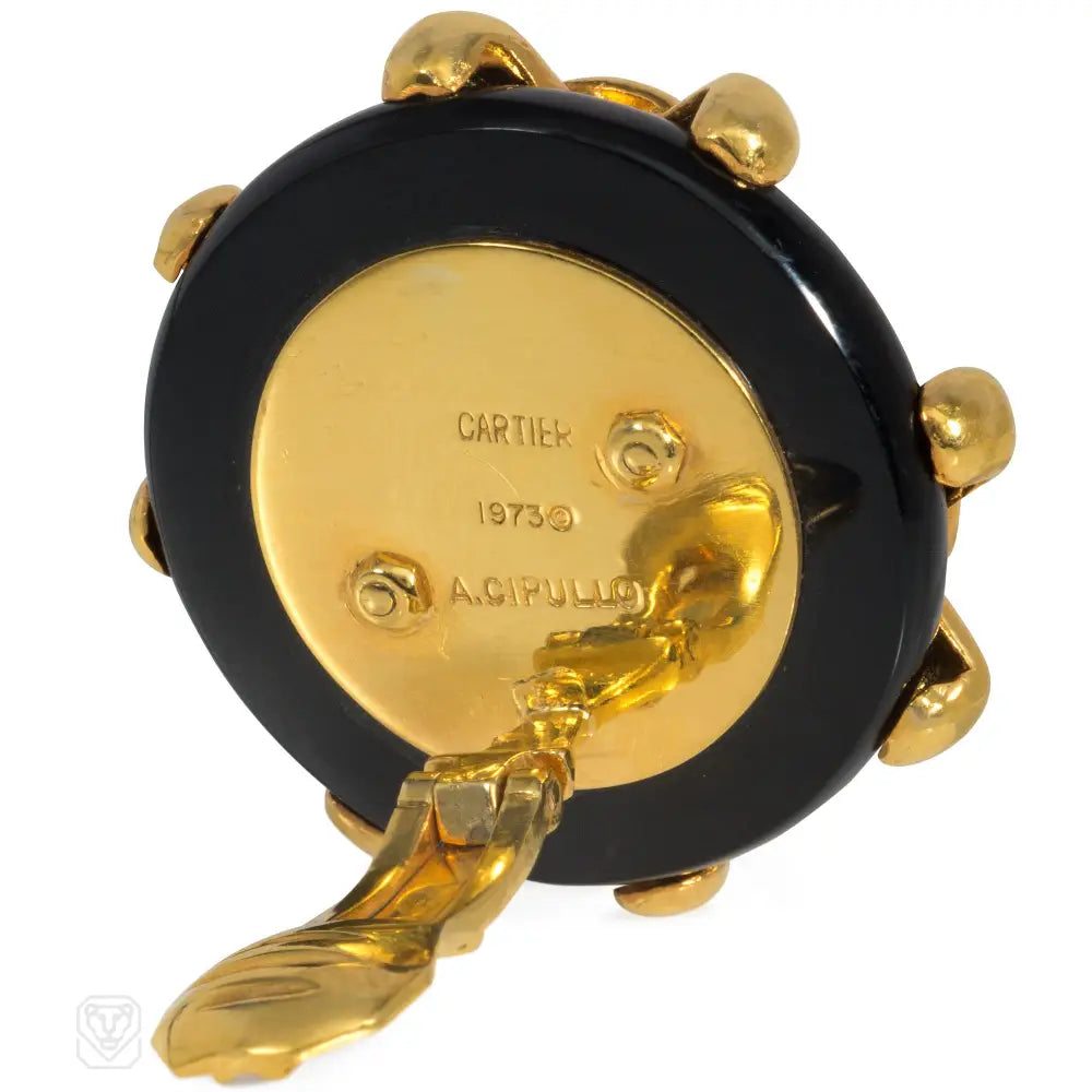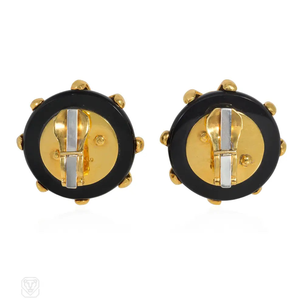 Cipullo for Cartier onyx and gold disc-shaped earrings.