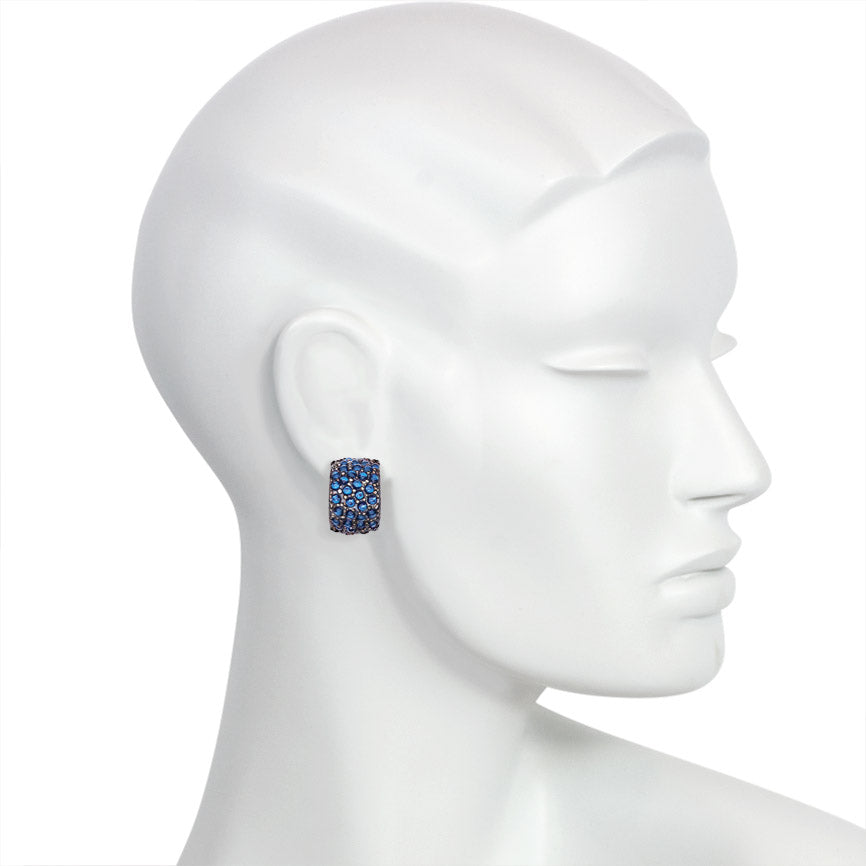 A pair of blue Swarovski crystal earrings in ruthenium finish. Simon Harrison
