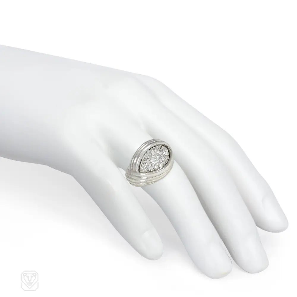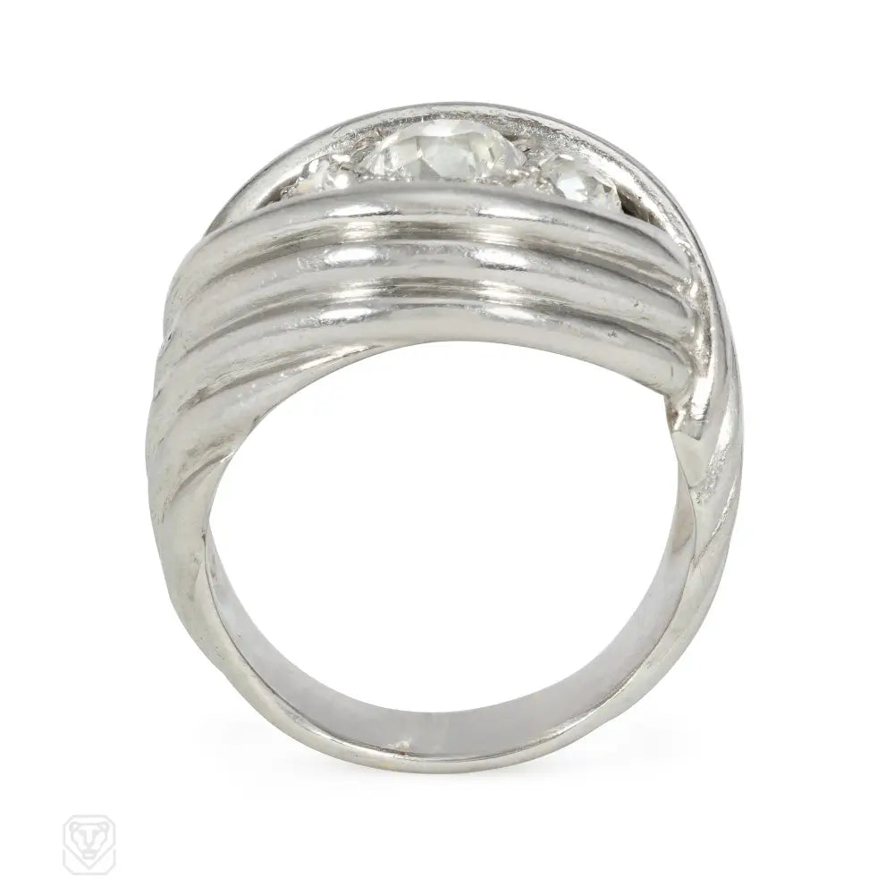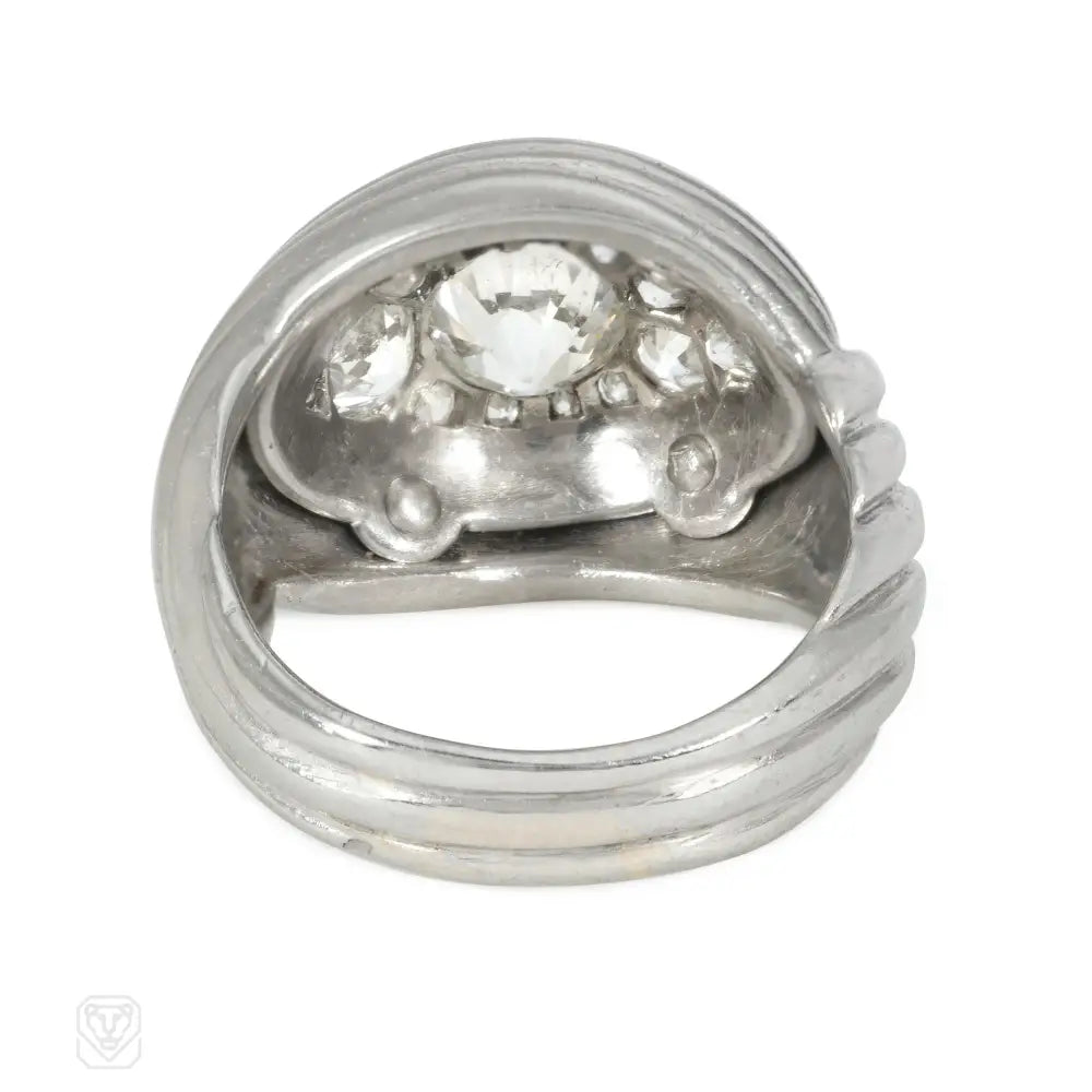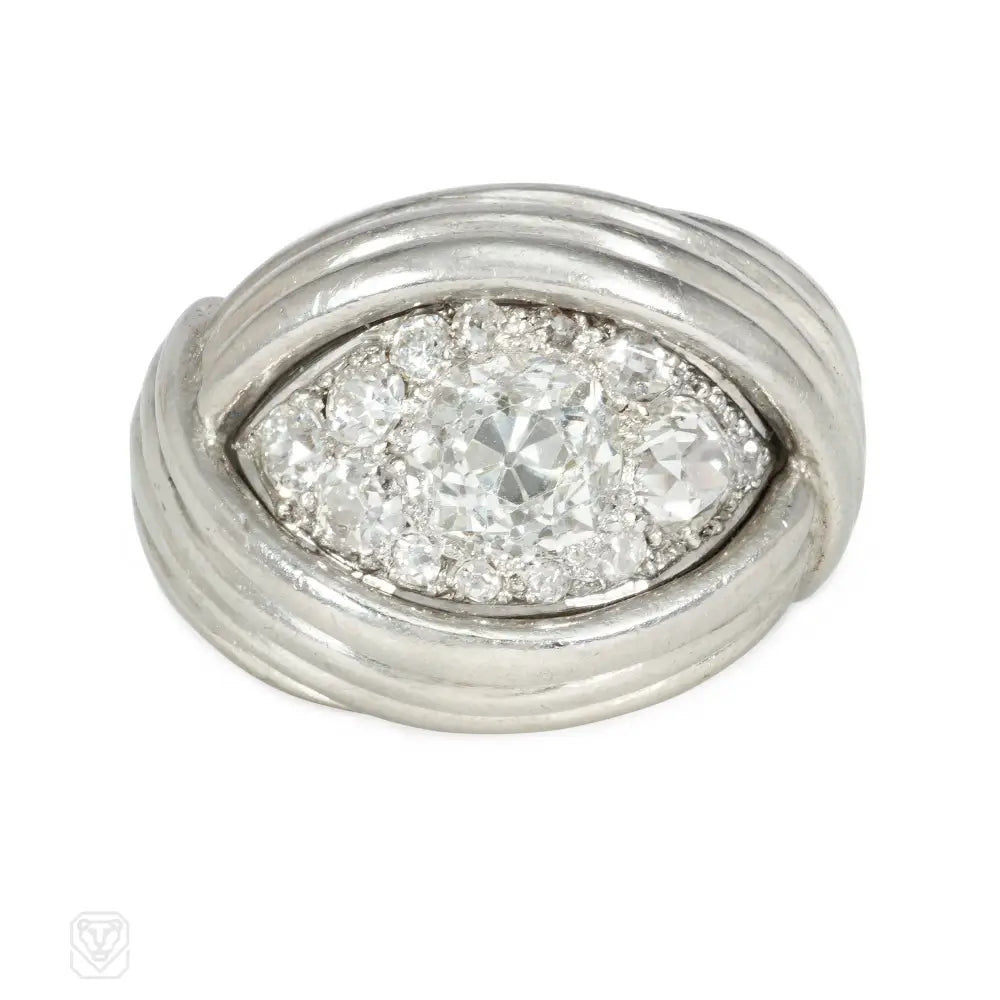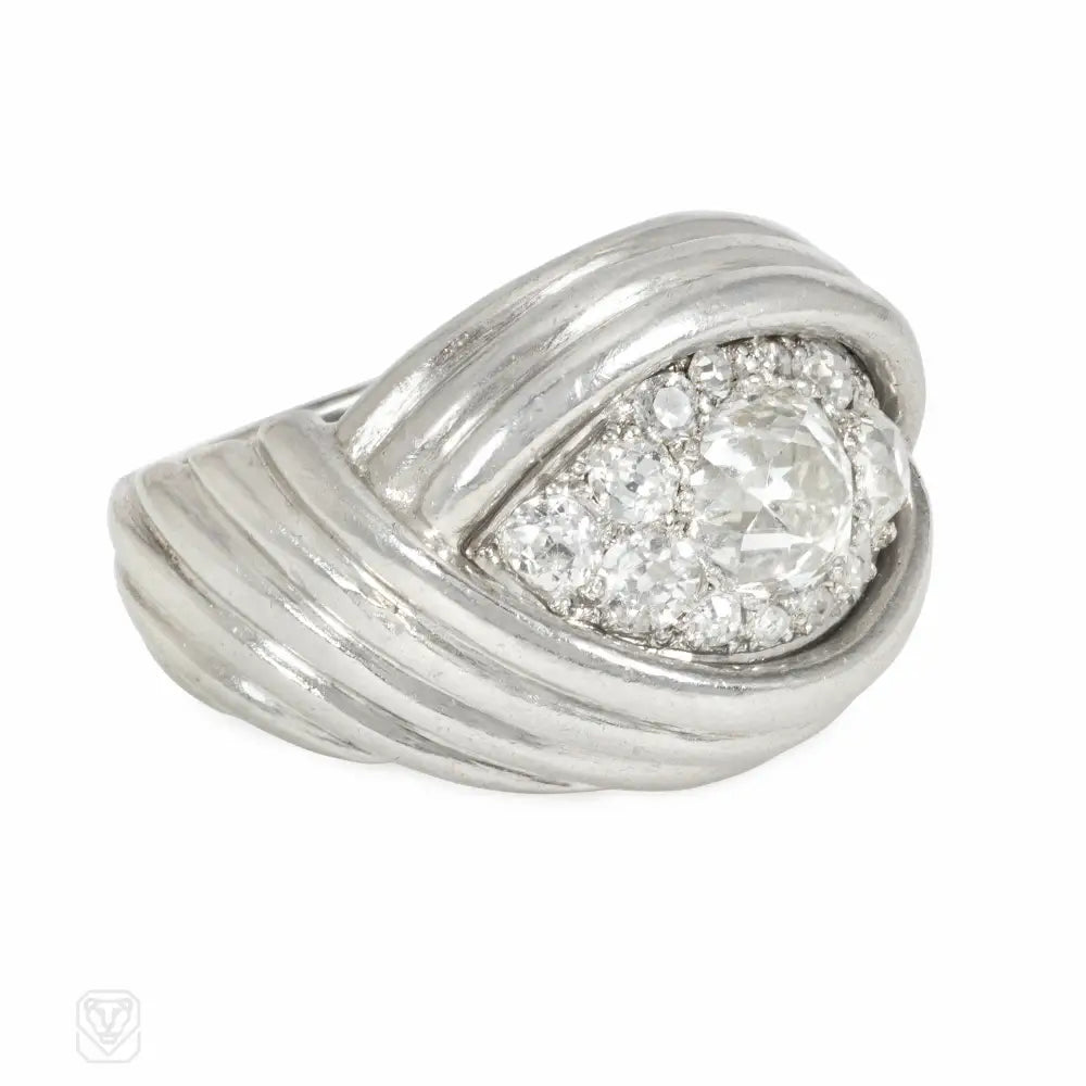 An Art Moderne diamond turban ring of wrapped bypass design, in platinum. France. Atw 1.66 cts.