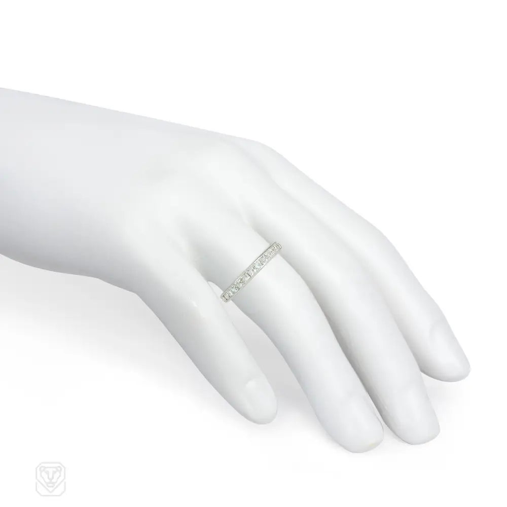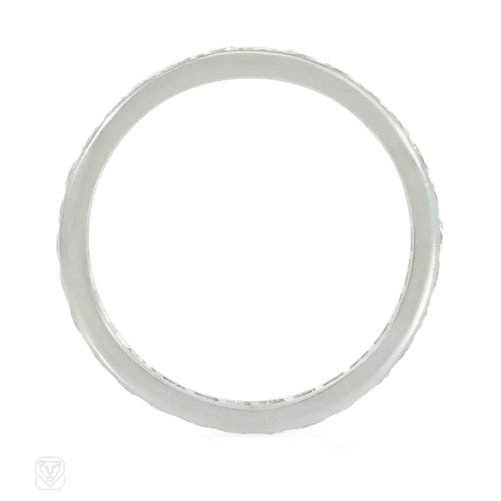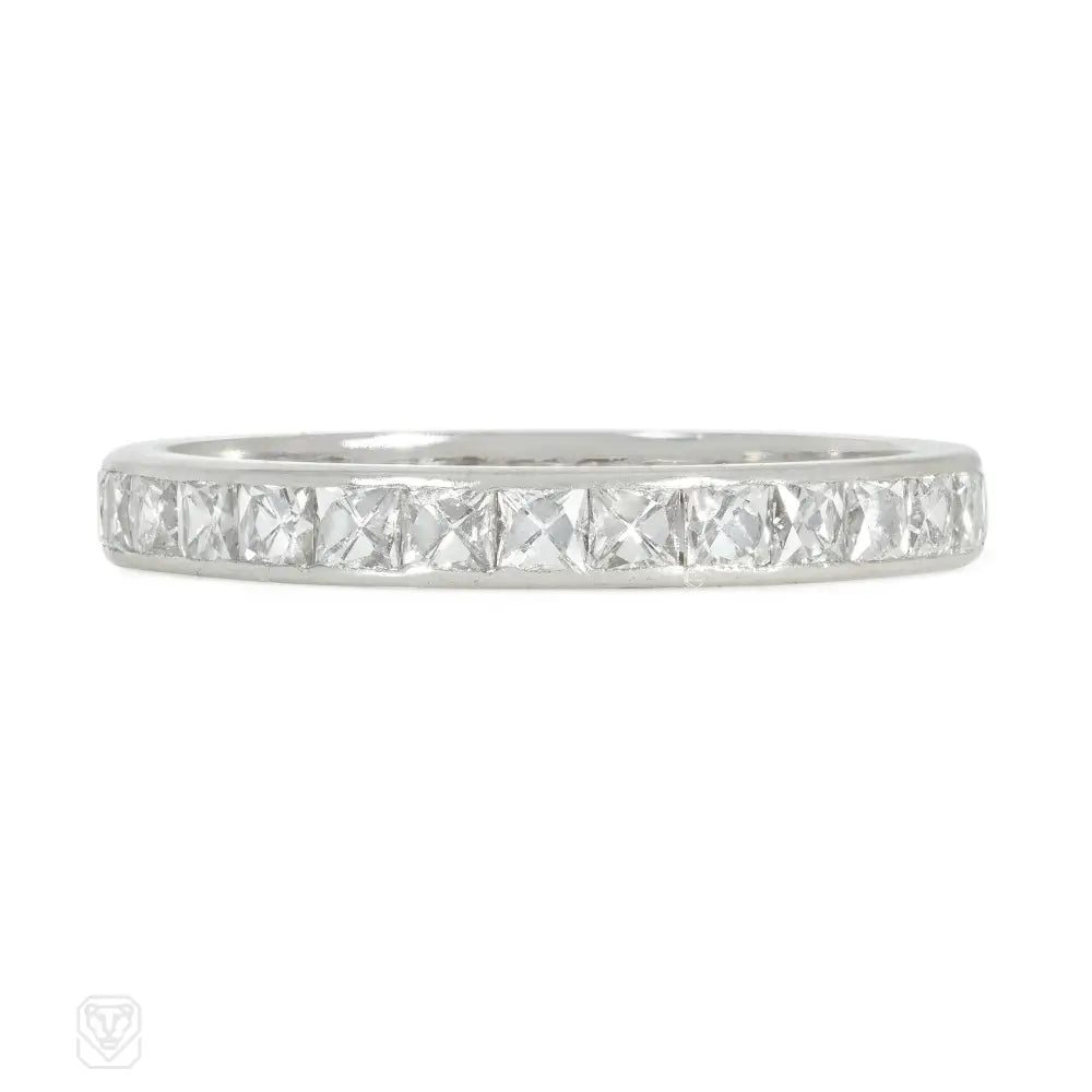 A channel-set, french-cut diamond band, in platinum. Atw diamonds 1.50 cts.