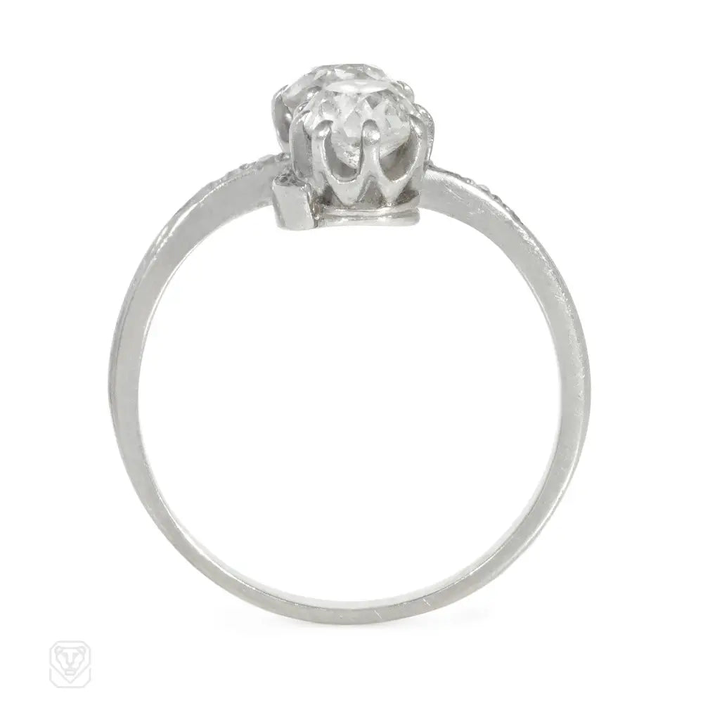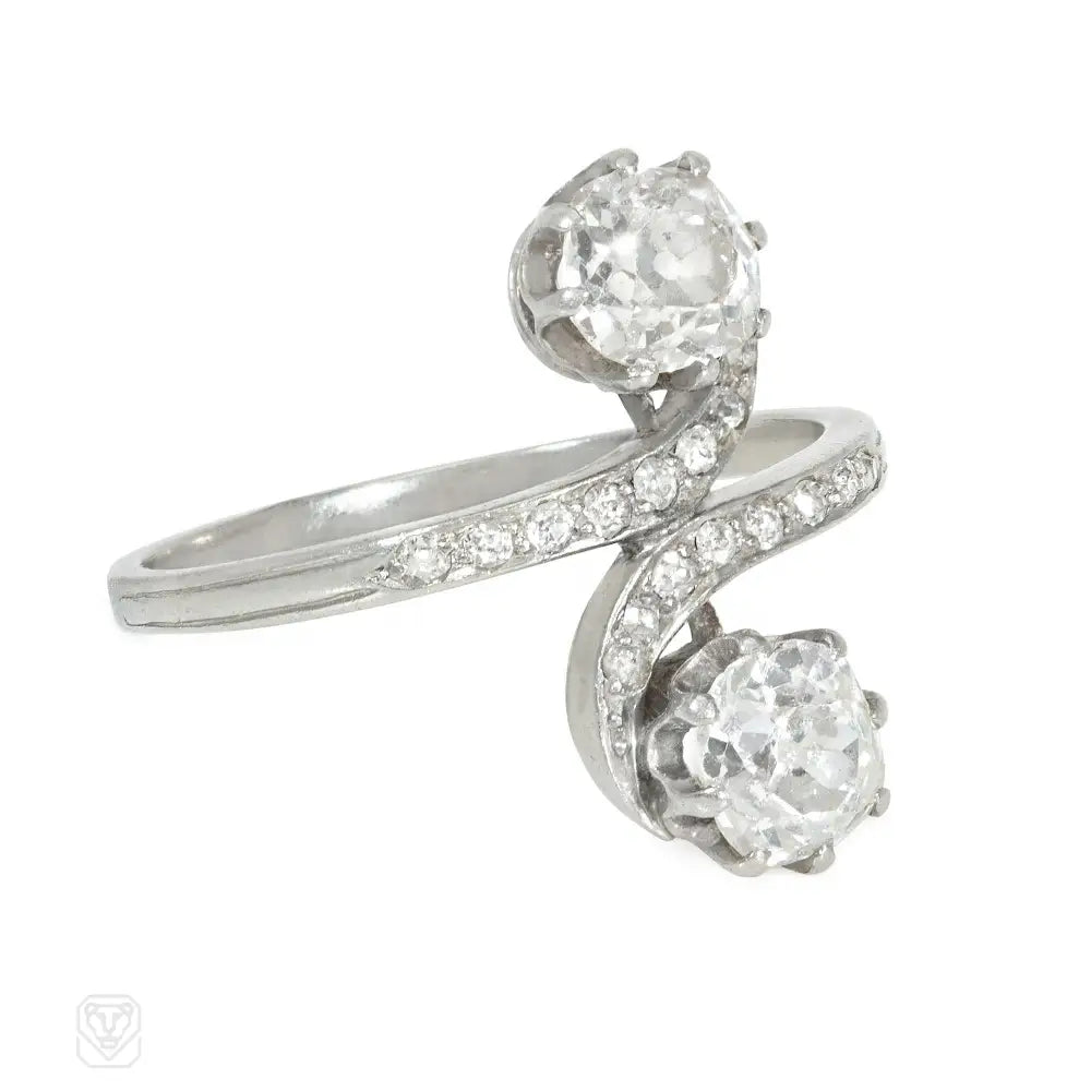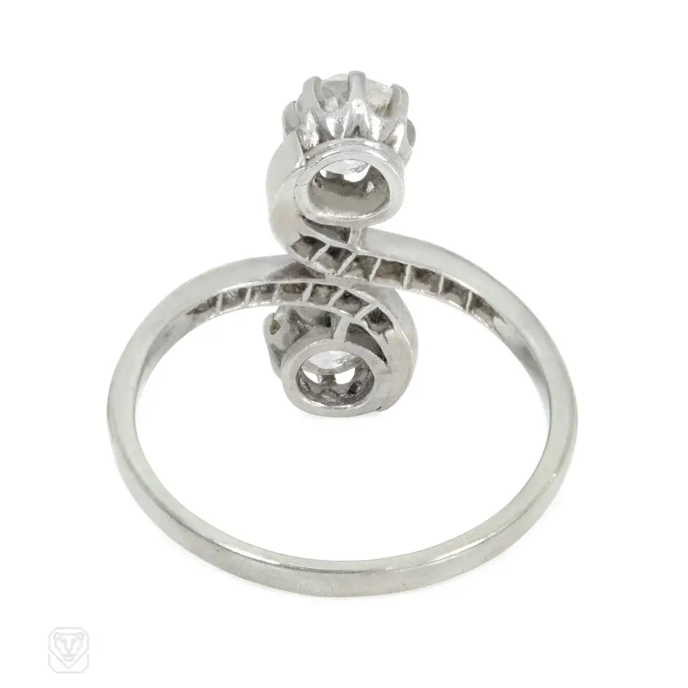An Art Deco old-mine diamond "Toi et Moi" ring of scrolling bypass design, in platinum. French Import.
