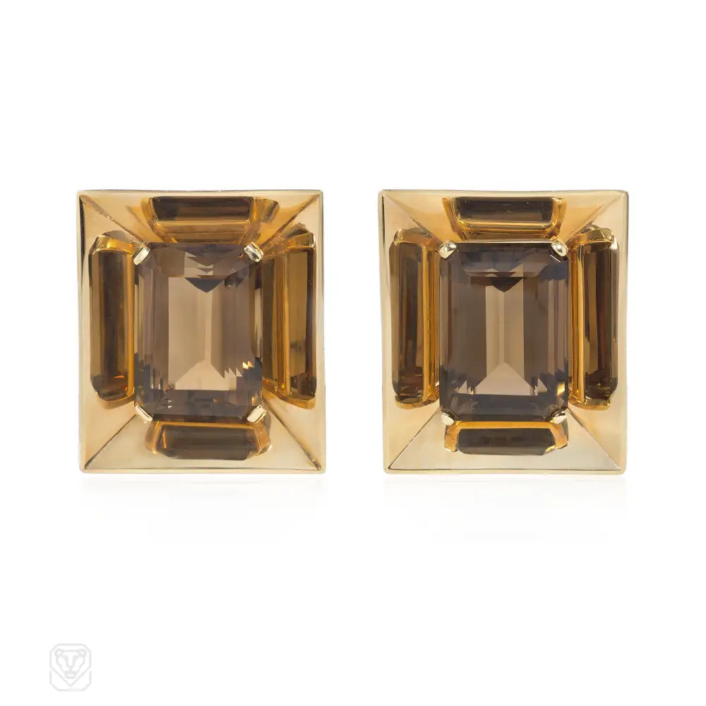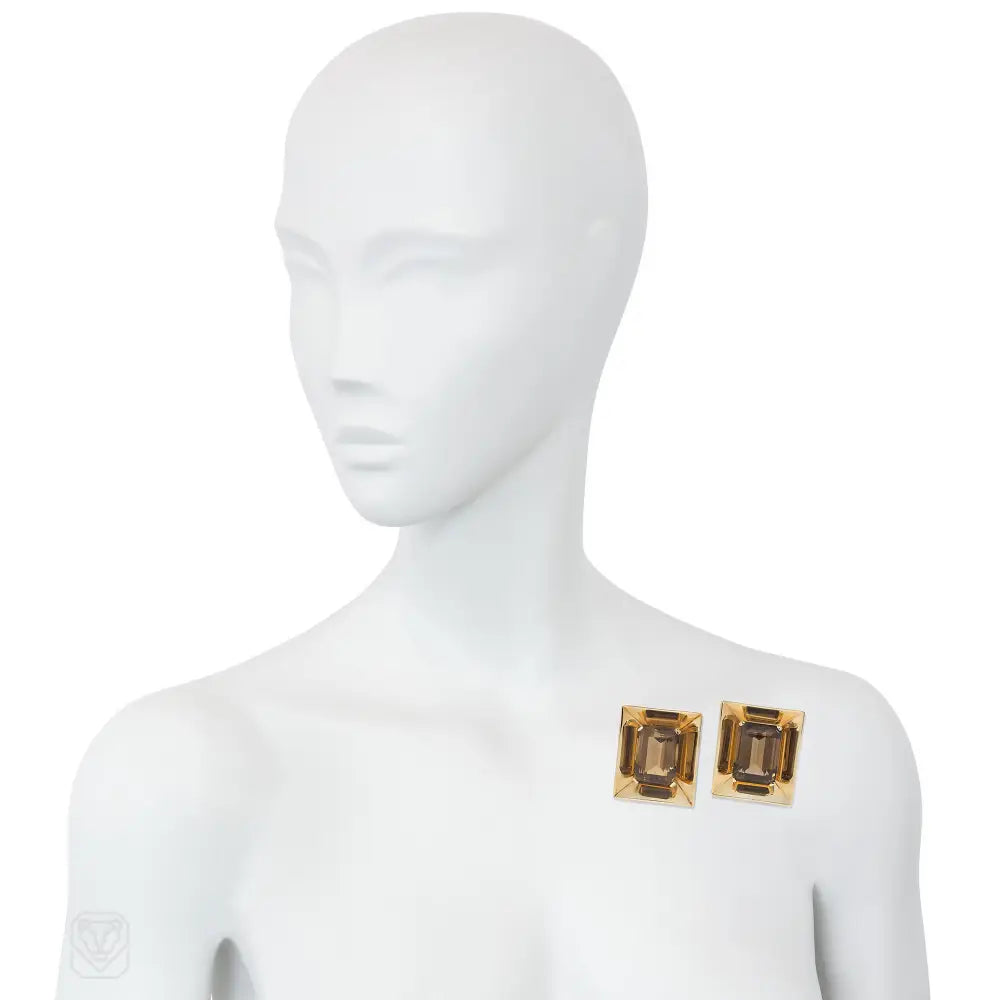 1940s Trabert, Hoeffer, & Mauboussin gold and citrine clip brooches