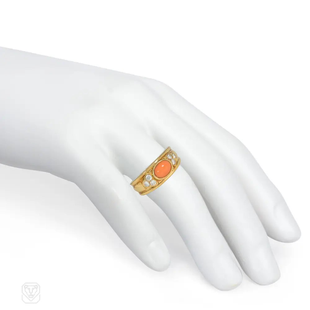 1990s Van Cleef & Arpels coral and diamond ring