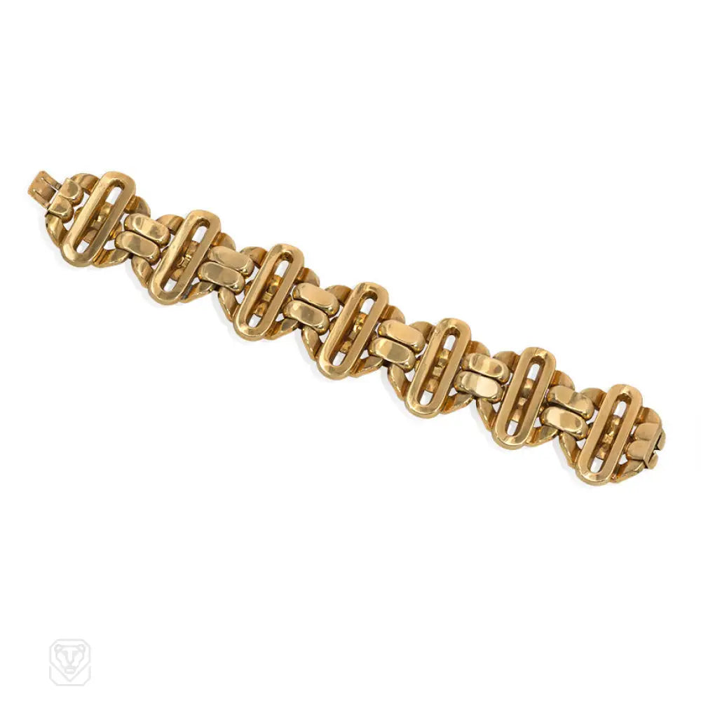 An antique gold and black enamel bracelet with rubies and pearls, in 18k. France