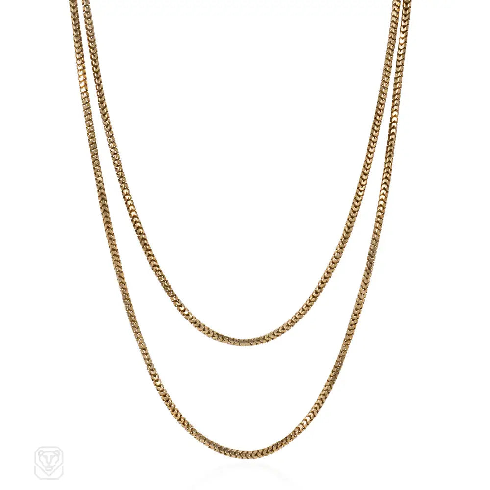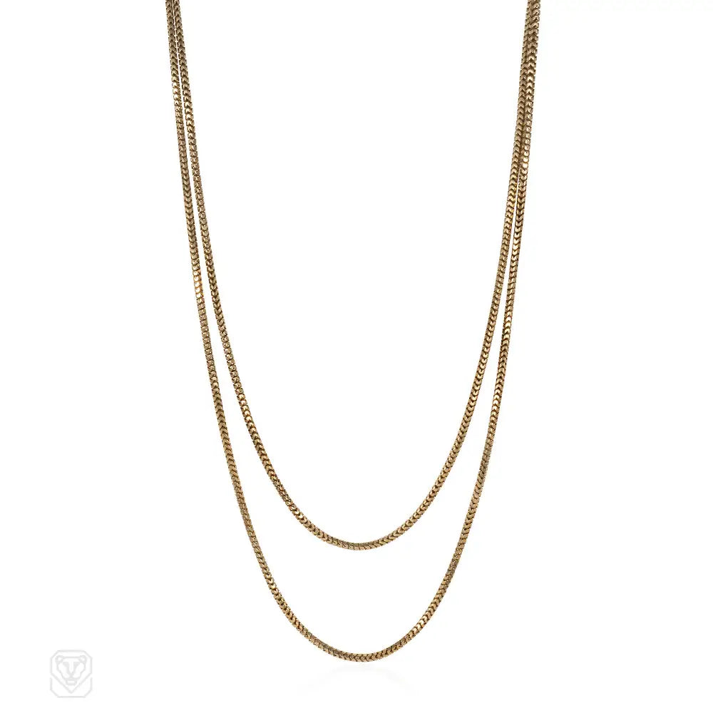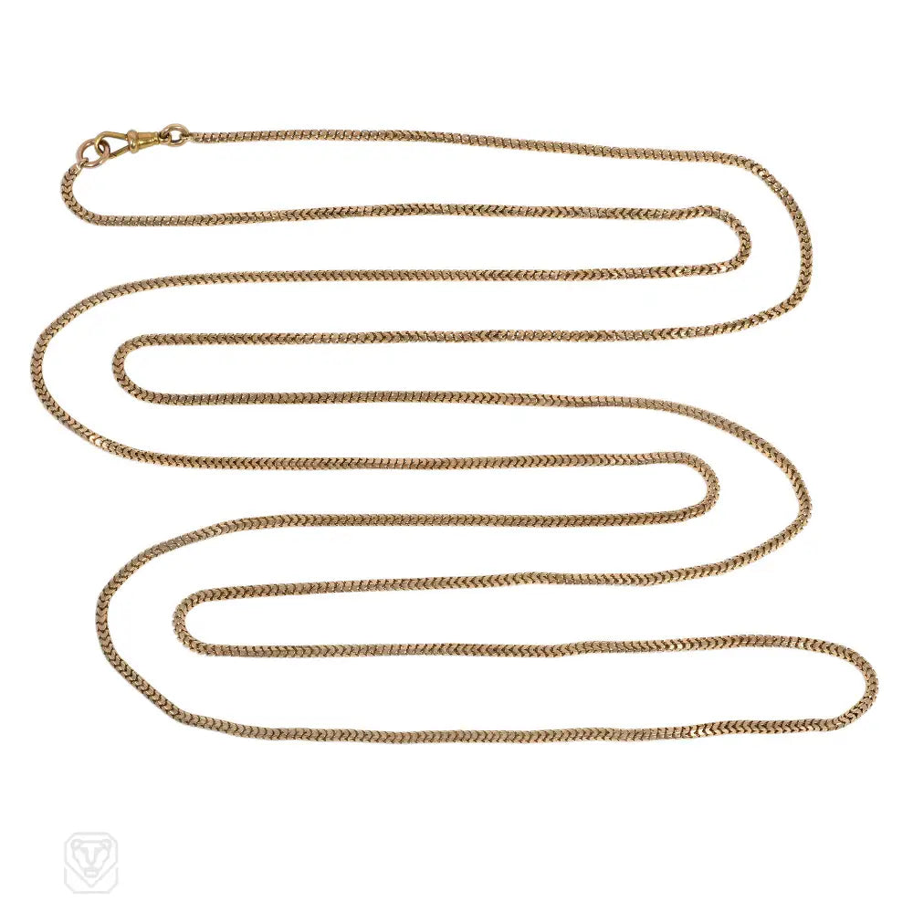 A Victorian gold longuard snake chain with a swivel clasp, in 15k. England