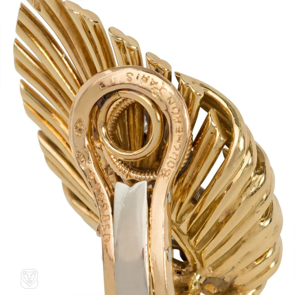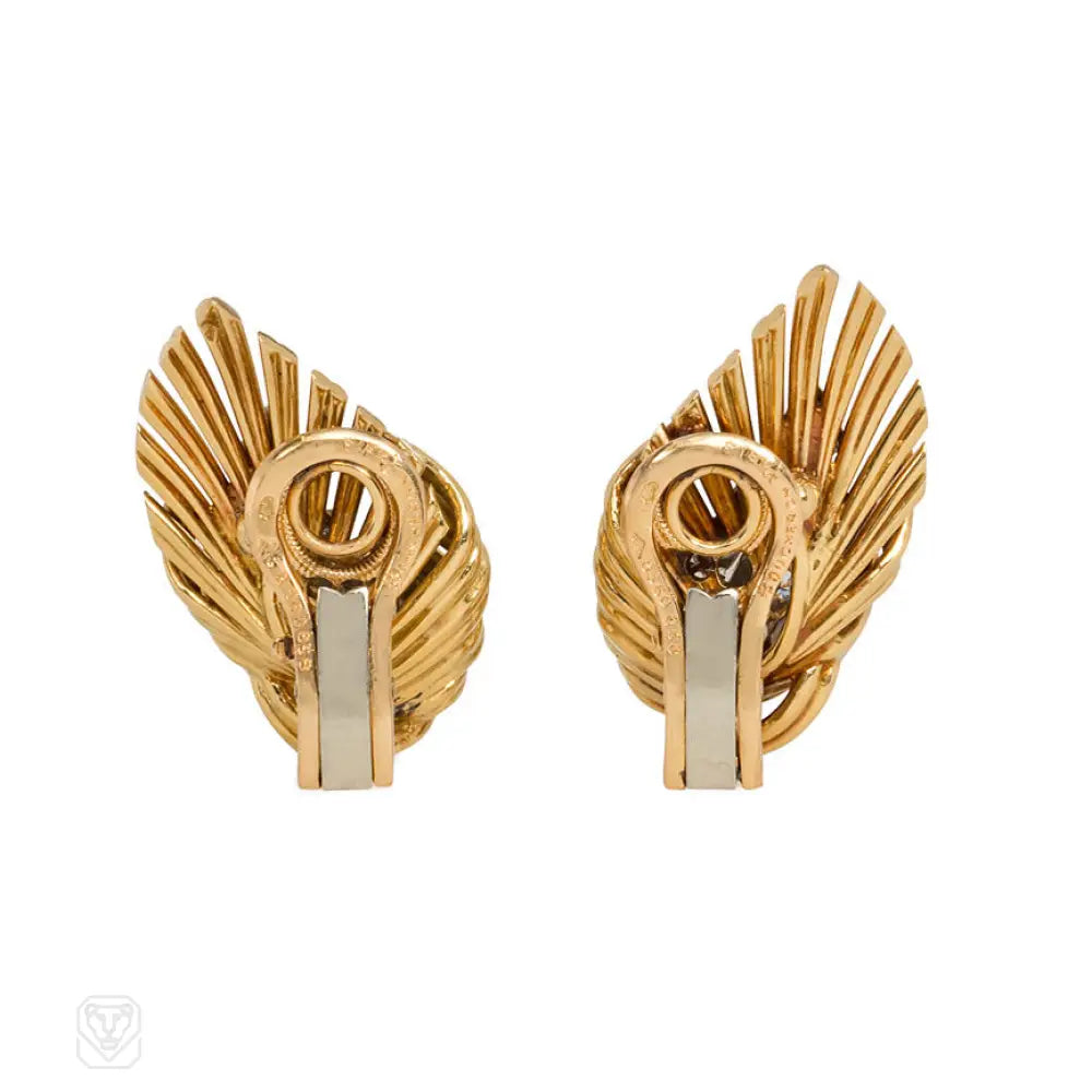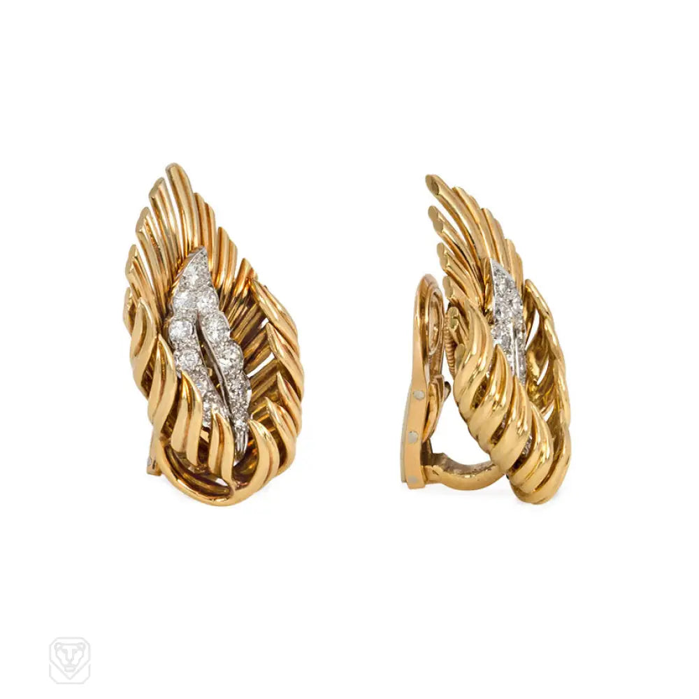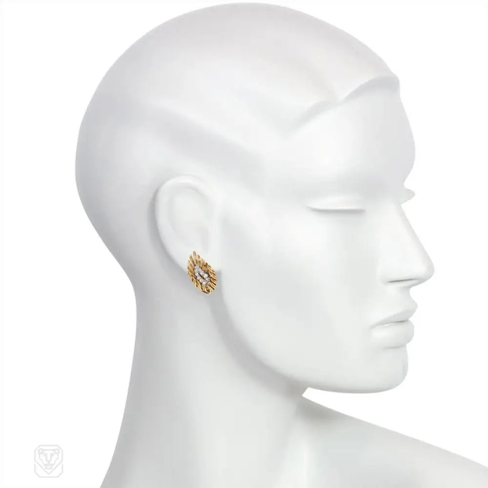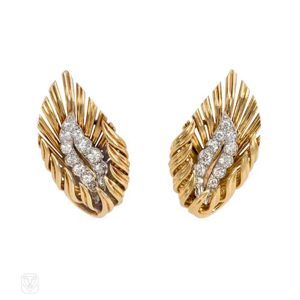 A pair of gold and diamond clip earrings in the form of flames, in 18k. André Vassort for Boucheron, Paris, #8560858. Atw diamonds 0.60 ct.