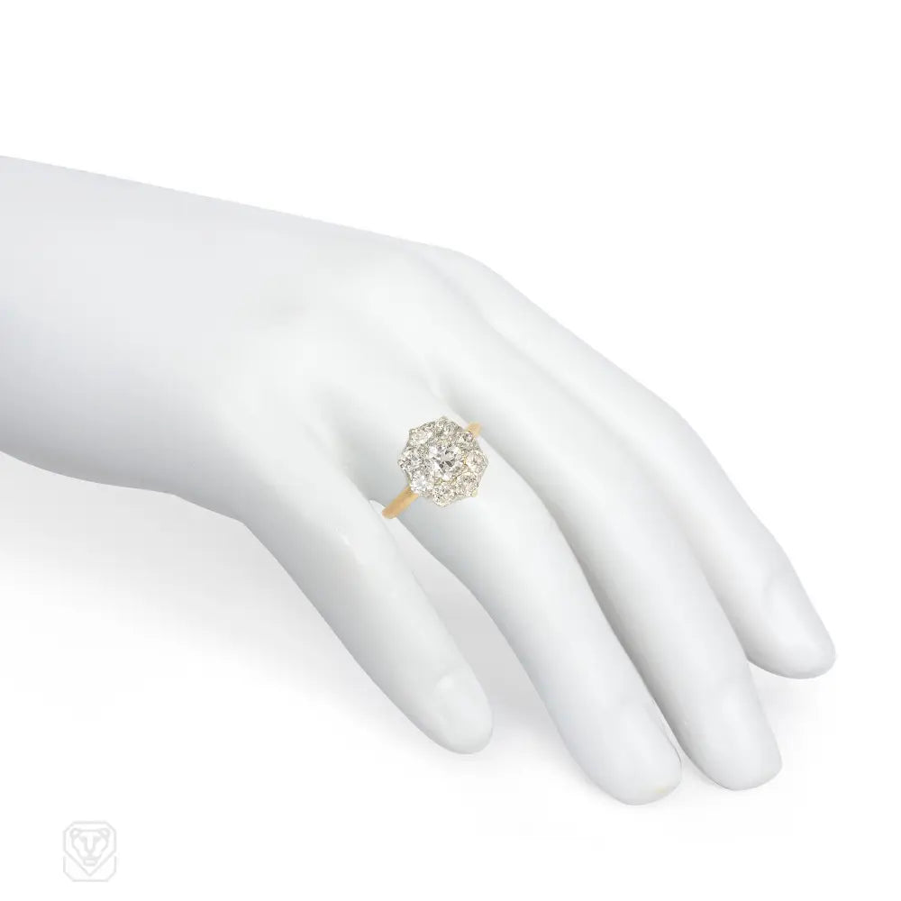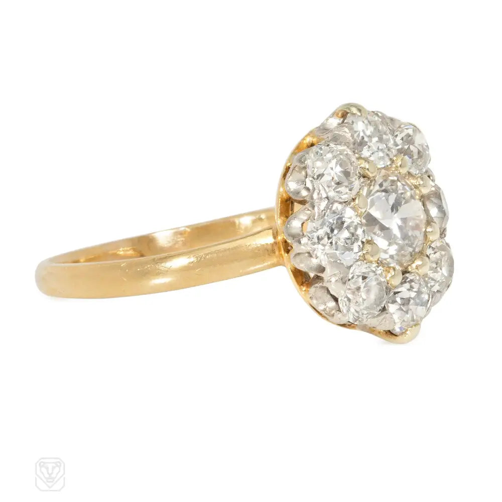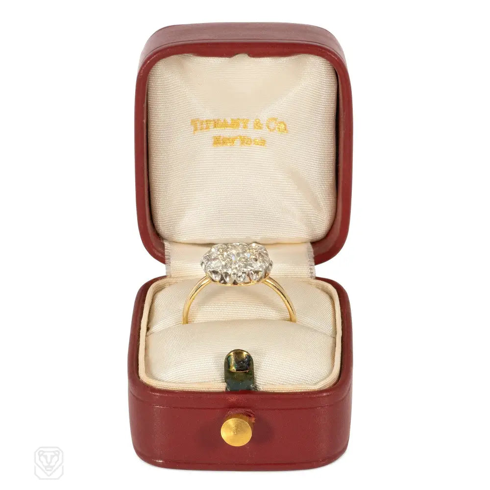 An Edwardian gold and diamond cluster ring, in 14k and platinum. Tiffany & Co. Atw diamonds 1.30 cts (center stone 0.50 ct)..