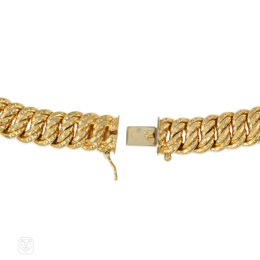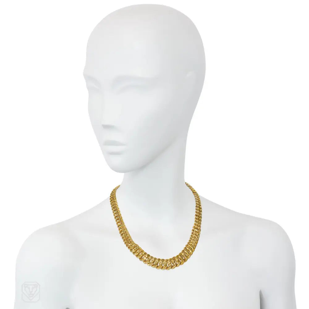 A reversible, graduated gold necklace comprised of faceted and engraved links on the front, and smooth, polished links on the verso, in 18k. France.