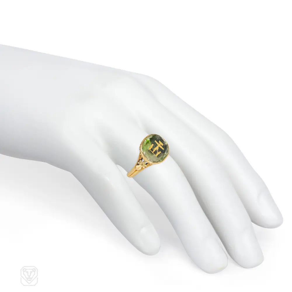 Georgian carved citrine and gold Passion of Christ ring