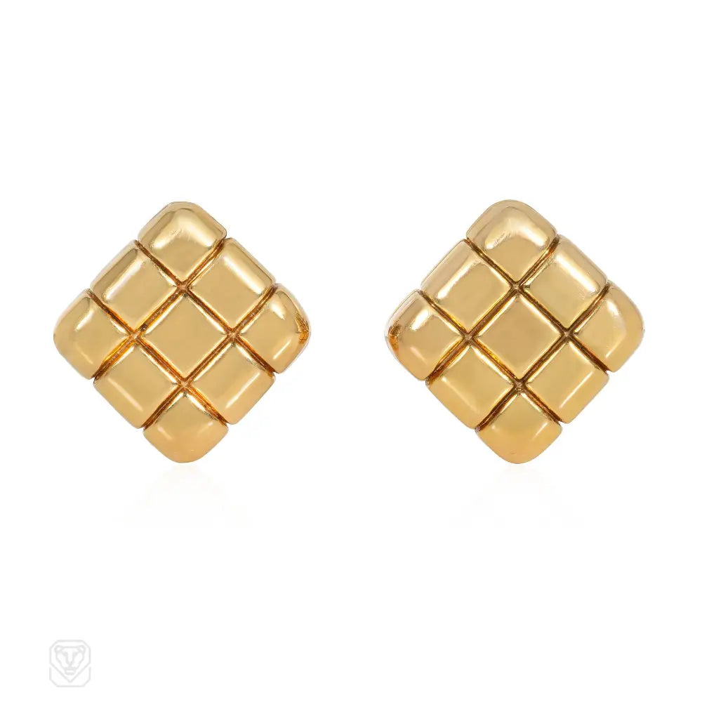 A pair of gold earrings in the form of gridded cubes, in 14k. Italy