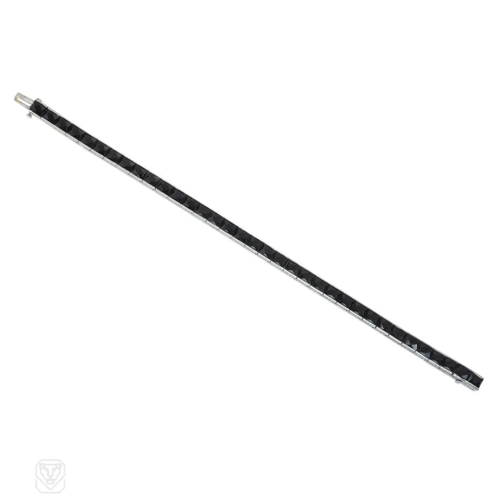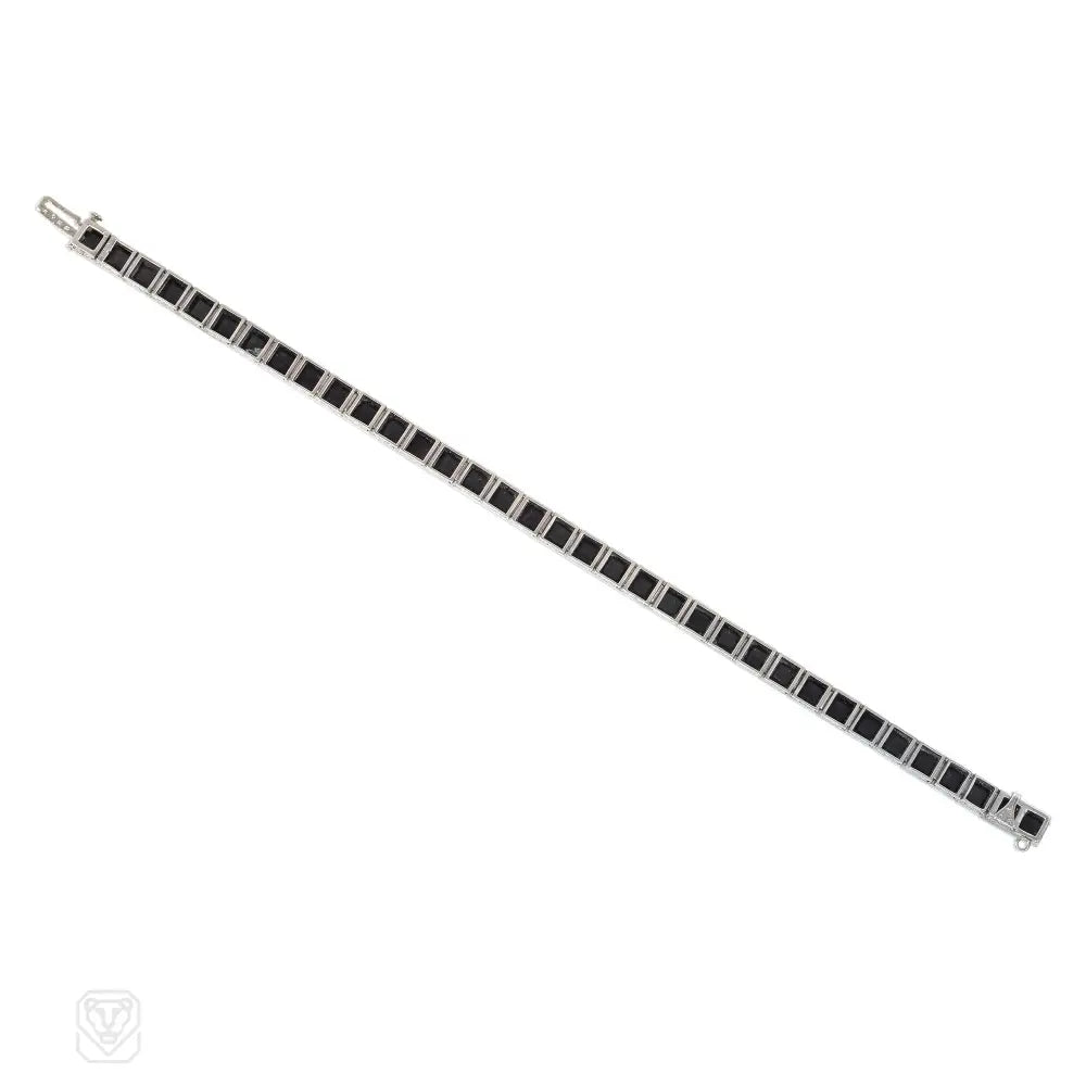 An Art Deco french-cut onyx line bracelet, in platinum. Oscar Heyman Bros. #4288