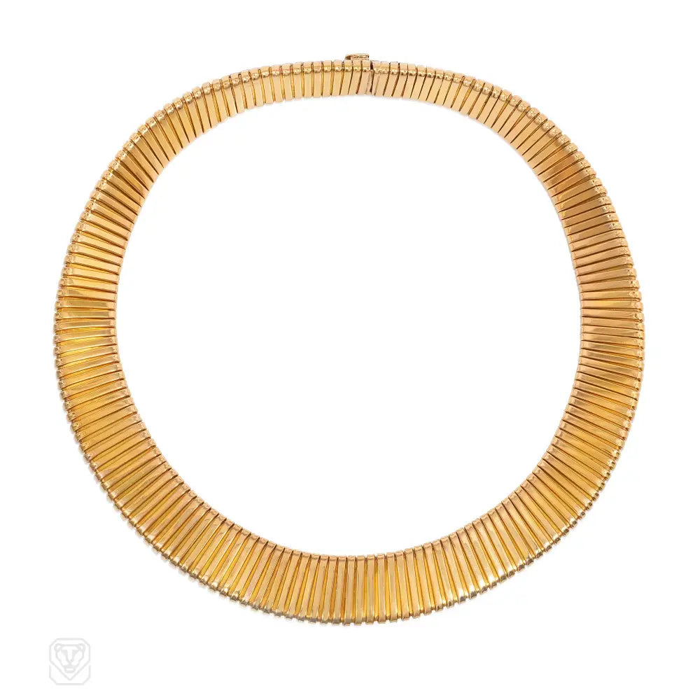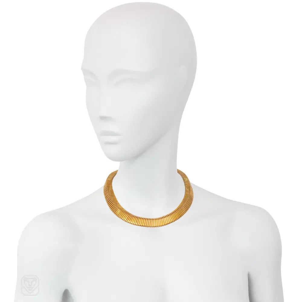 A Retro gold tubogas necklace of pyramid design, 18k. French import.