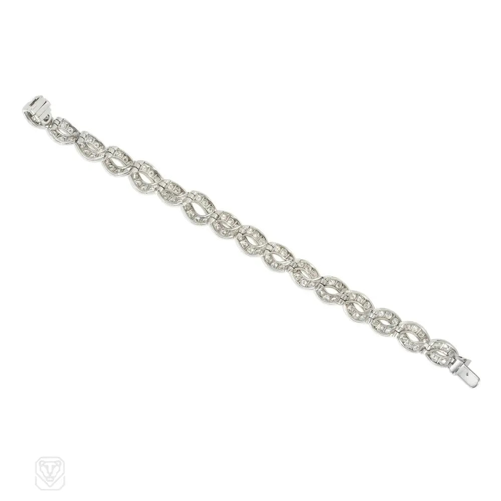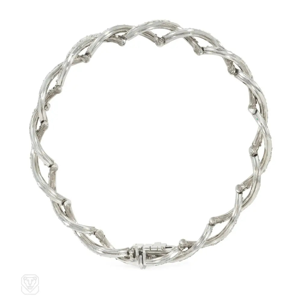 A Mid-Century diamond bracelet of articulated and twisted design, in platinum. Atw diamonds 7.25 cts.