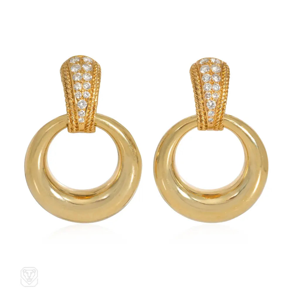 Van Cleef & Arpels interchangeable diamond and gold doorknocker hoop earrings