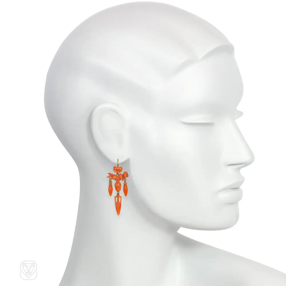 Victorian carved coral angel earrings