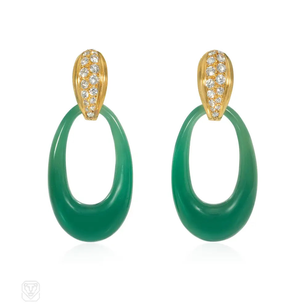 Cartier, Paris interchangeable doorknocker earrings in gold and chrysophrase