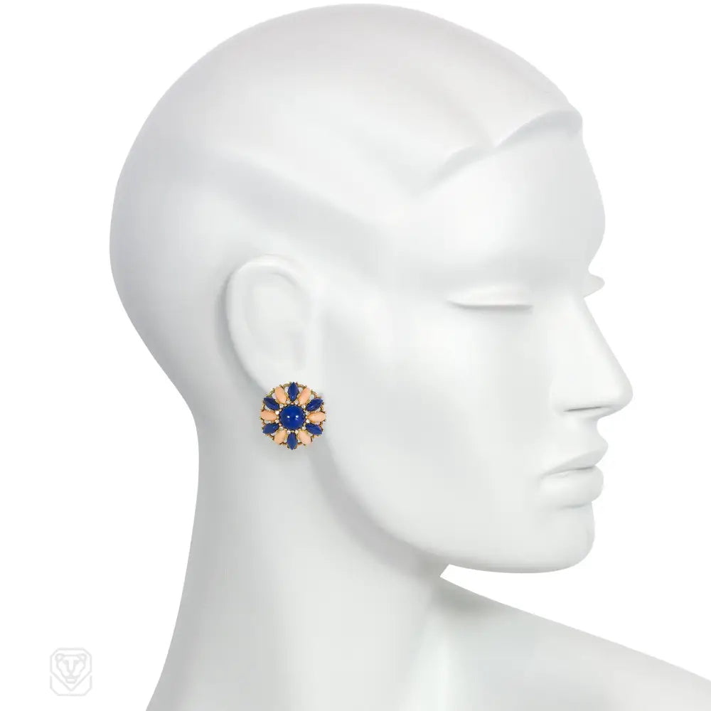 Mid-Century Italian angel skin coral and lapis earrings
