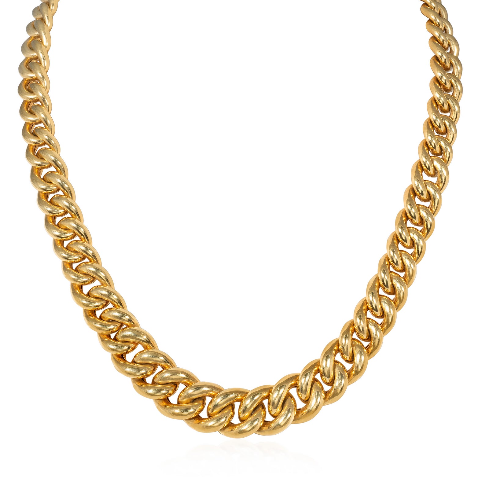 A graduated gold curb link chain necklace, in 18k. France.