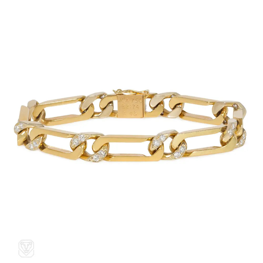 A Mid-Century gold and diamond figaro link bracelet, in 18k. Van Cleef & Arpels, France. #B2174 A43. Atw diamonds 0.96 ct.