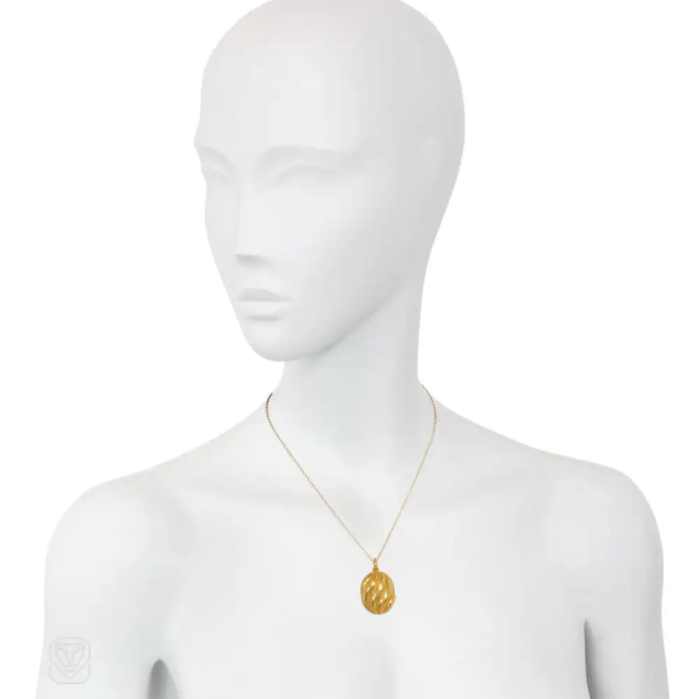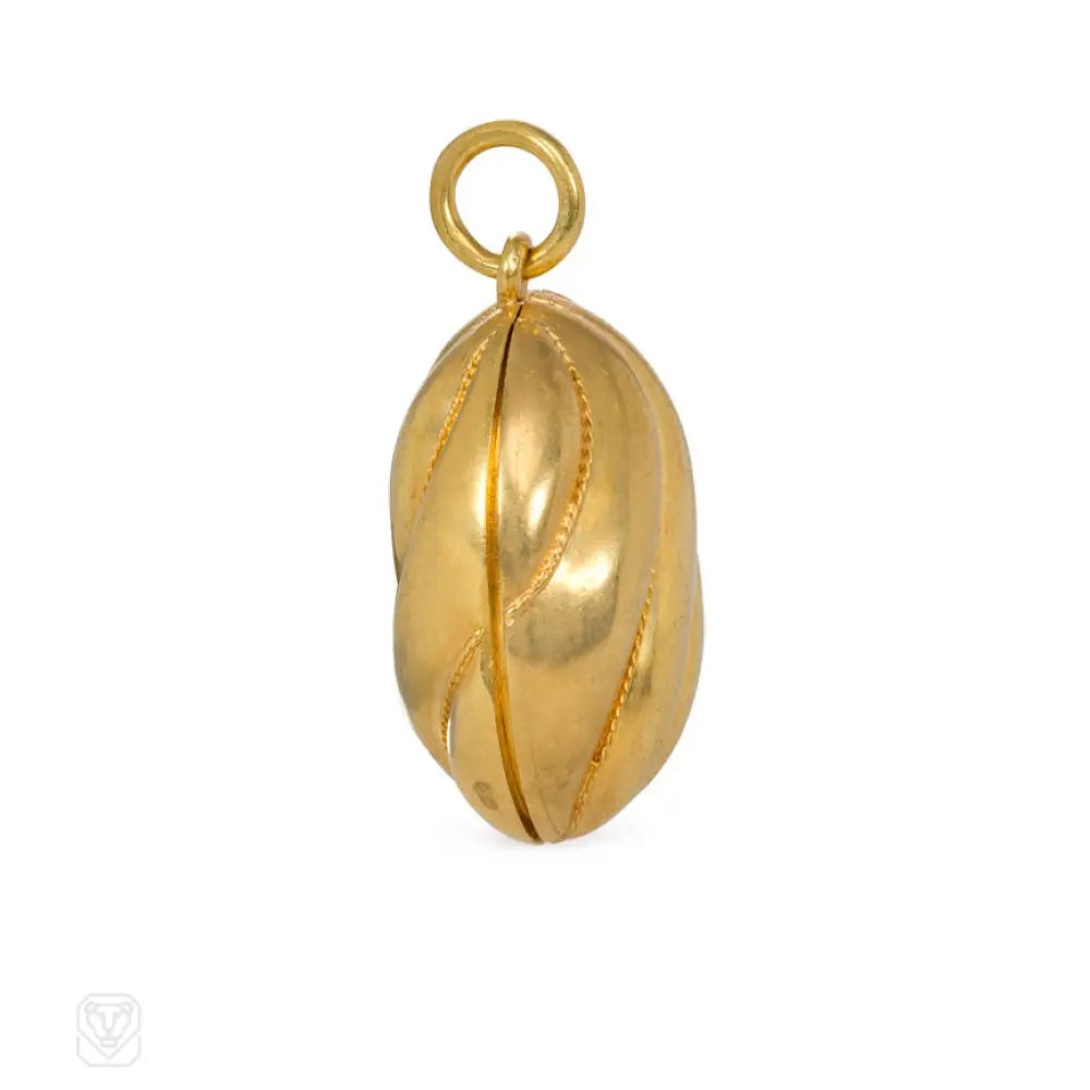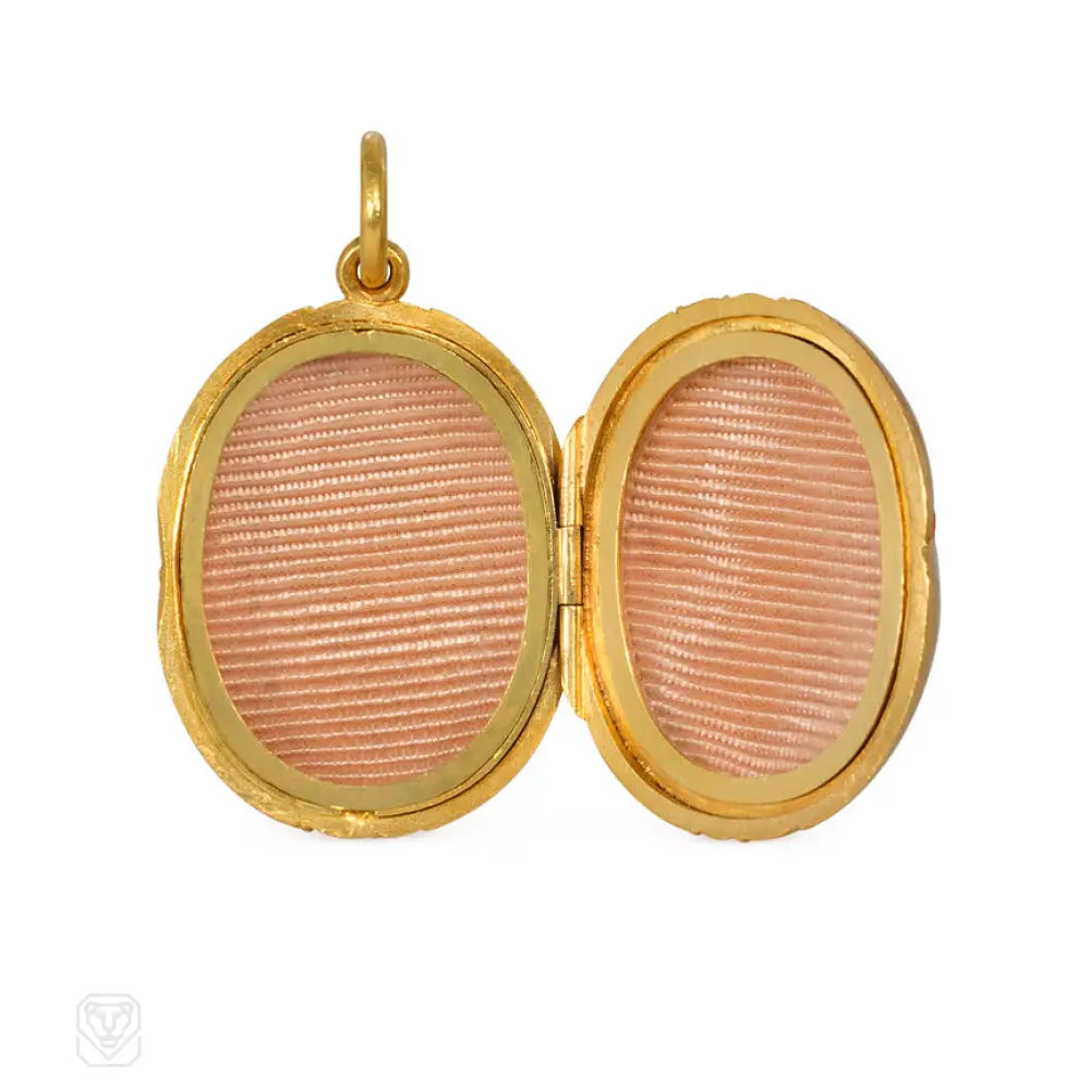 An antique gold double-sided gadrooned locket with two interior picture compartments, in 15k. England (Chain not included)
