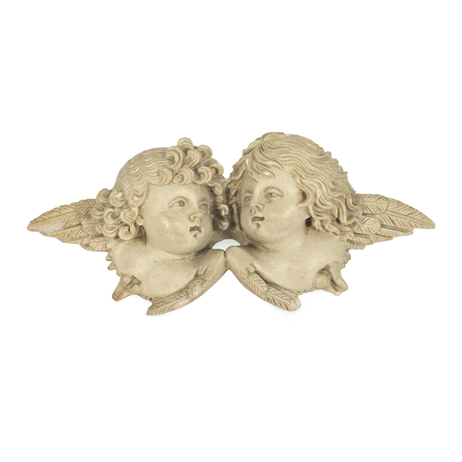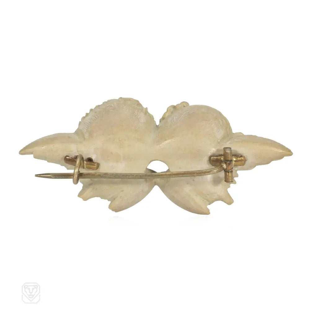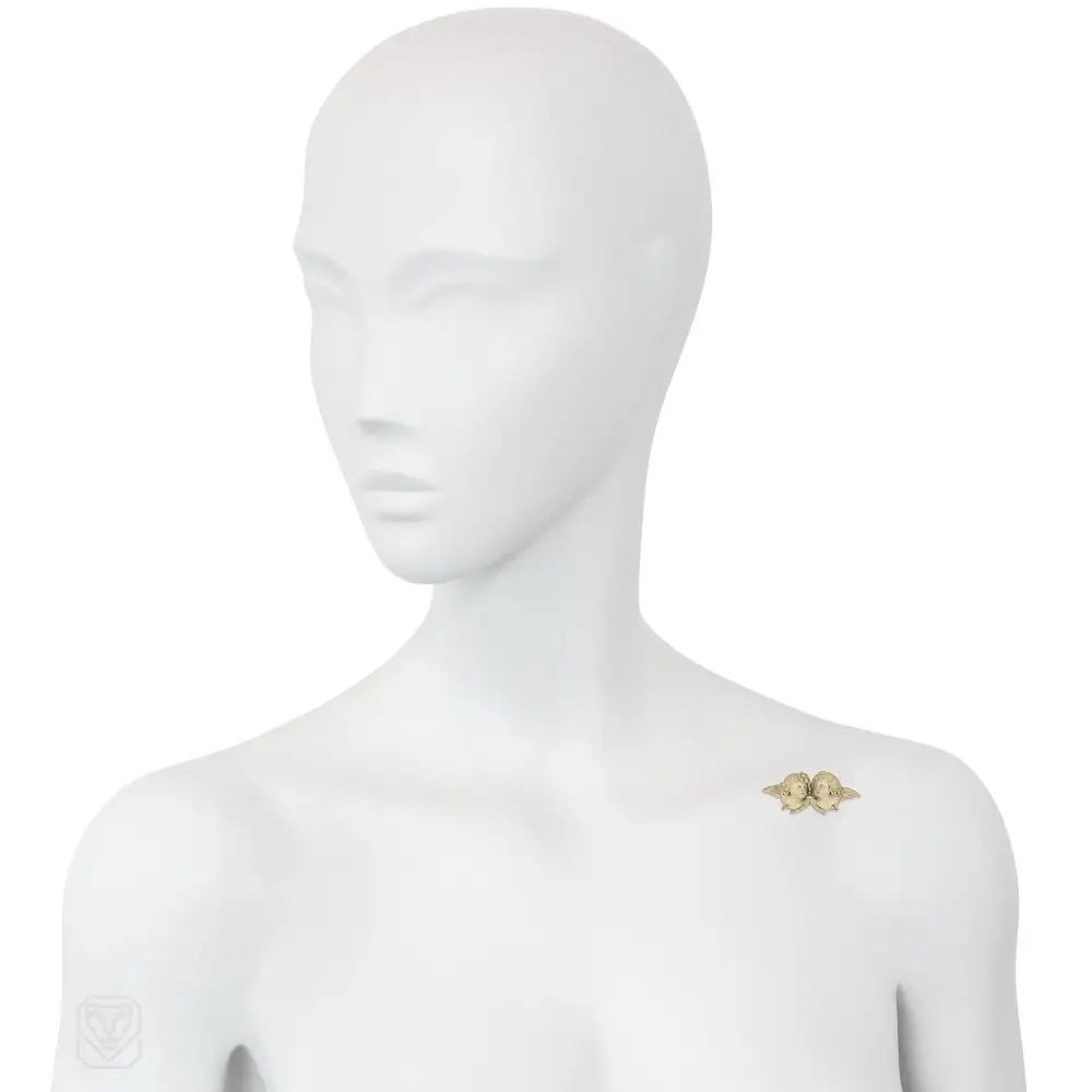 A finely carved Victorian lava brooch depicting two winged cherubs, with gold fittings. Italy