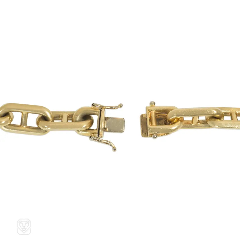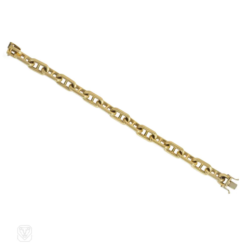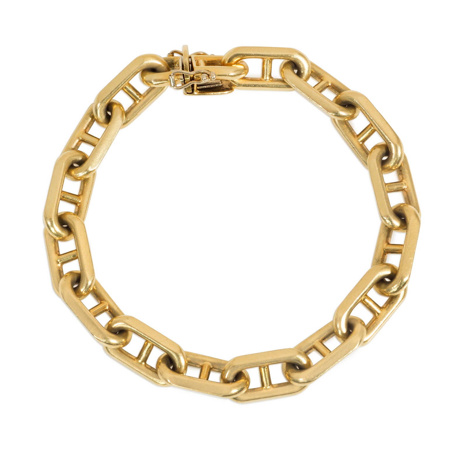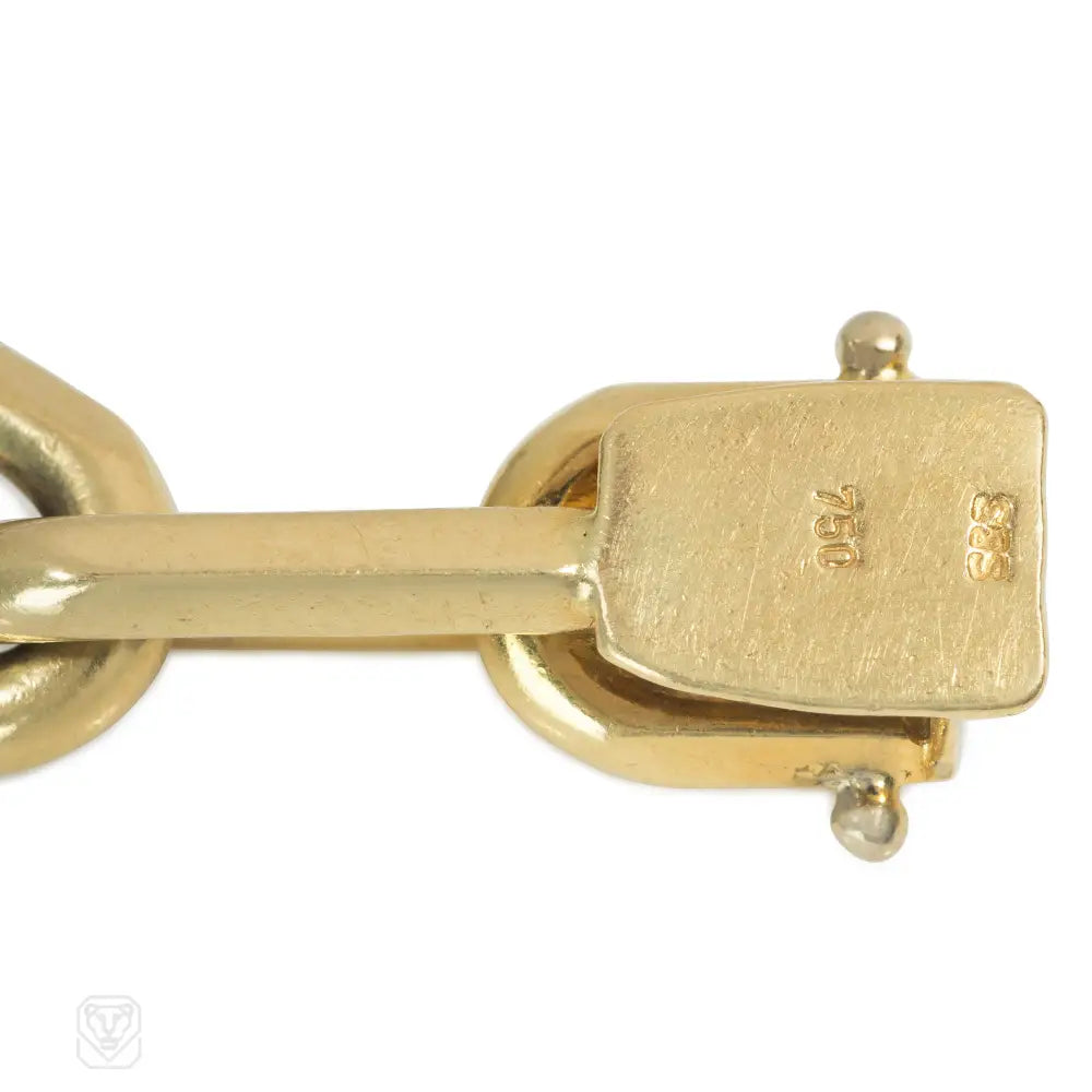 A gold mariner-link bracelet with beveled and rounded links, in 18k. Sannit & Stein, London.