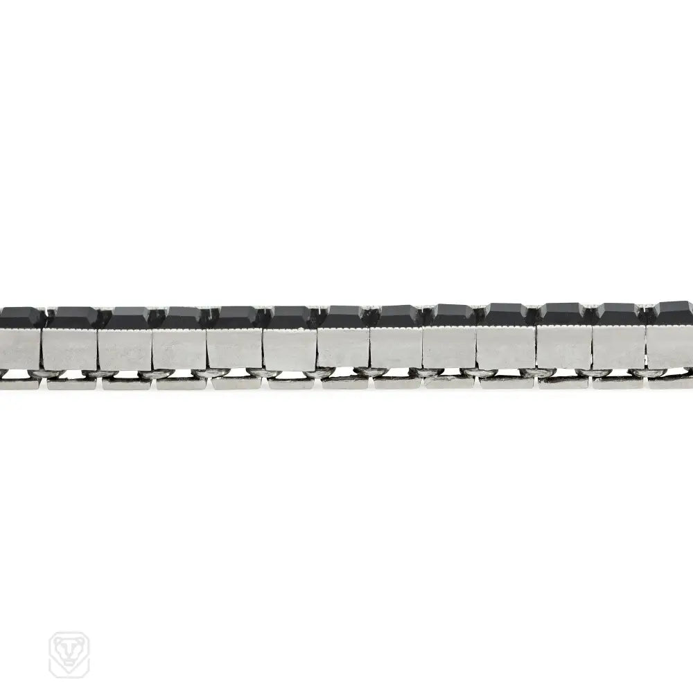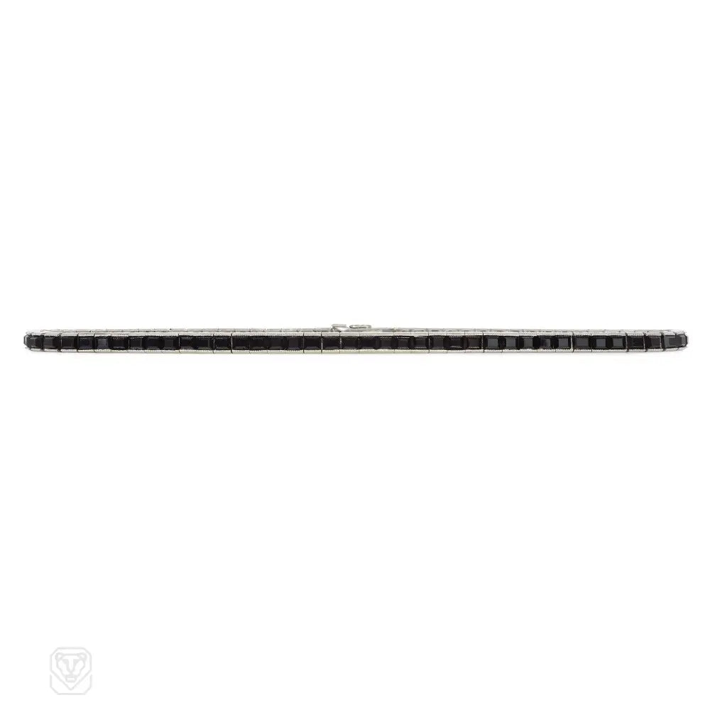 An Art Deco onyx line bracelet, in platinum. Tiffany.