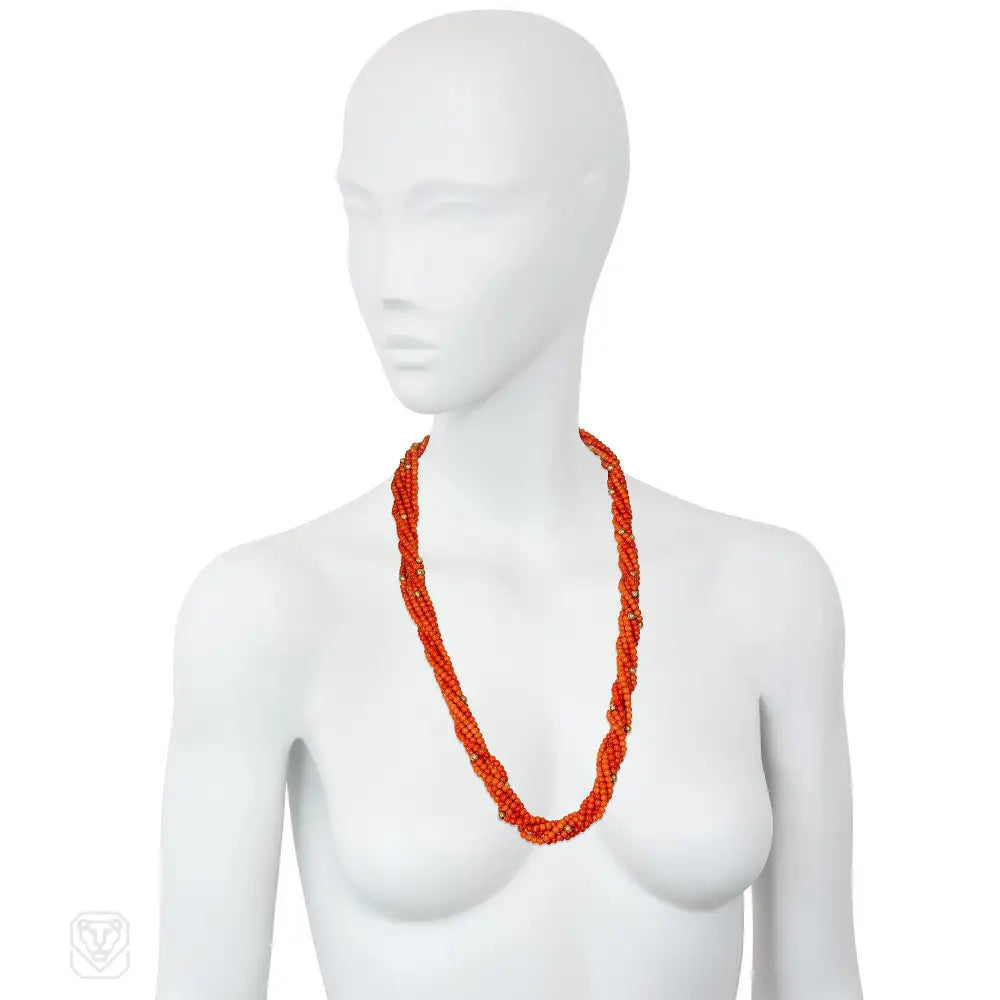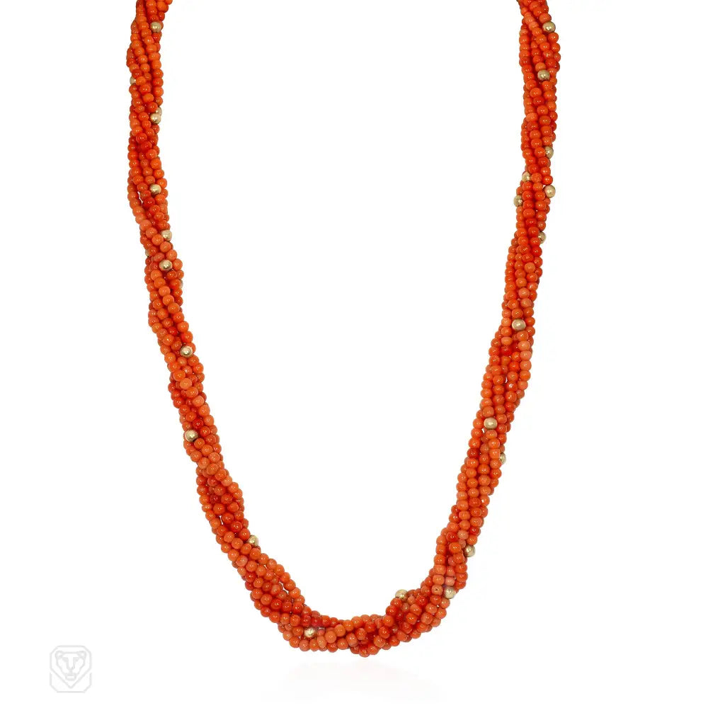 Van Cleef & Arpels Mid-Century coral and gold torsade necklace