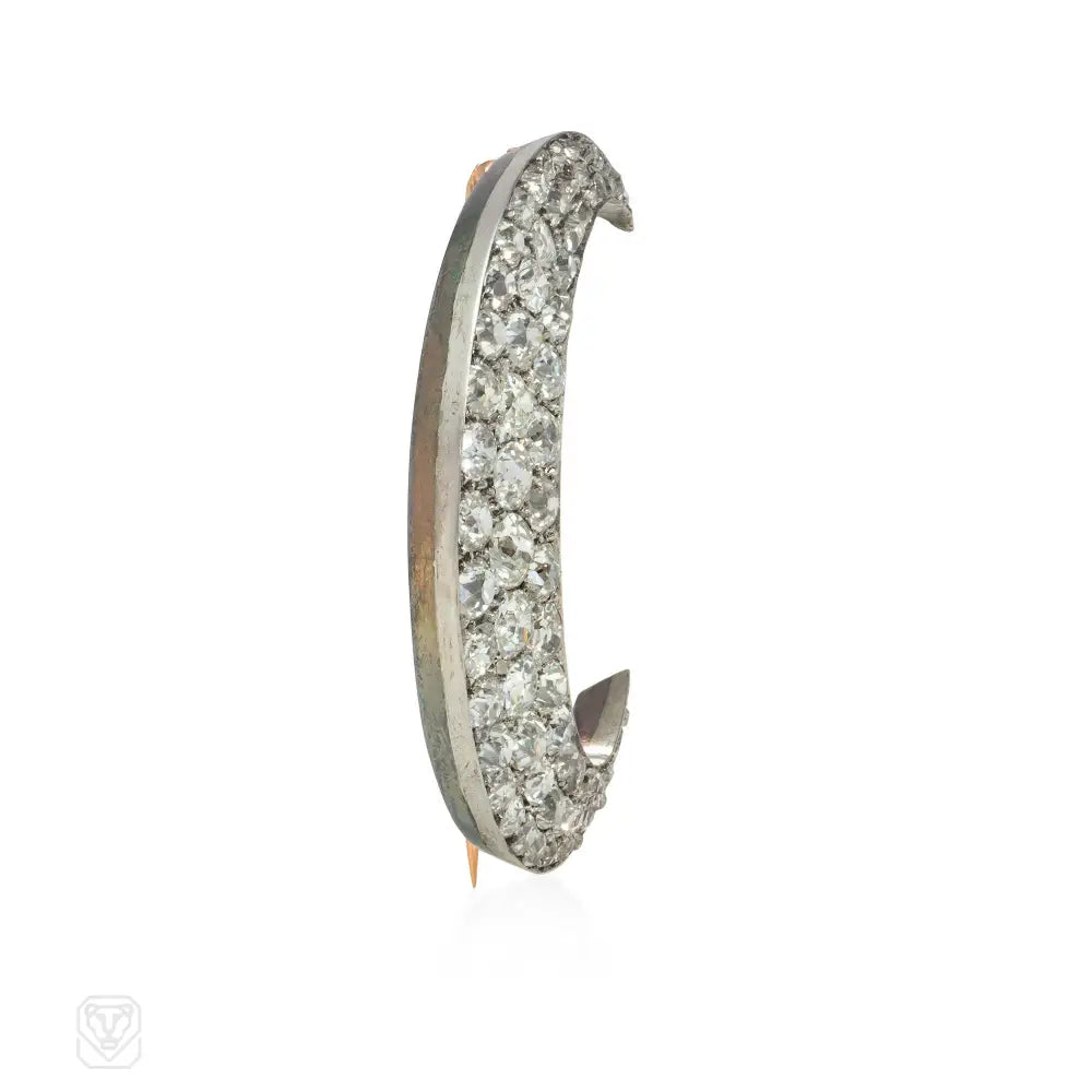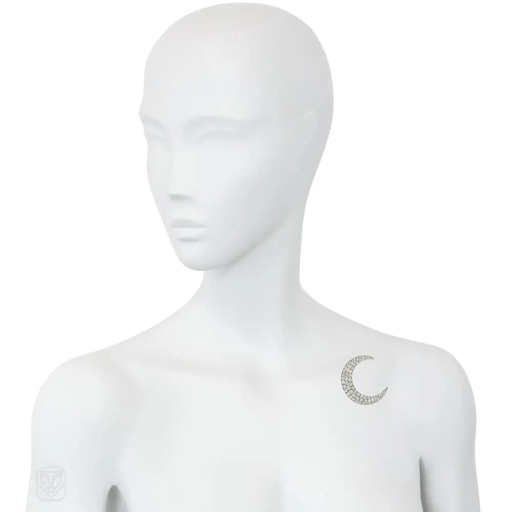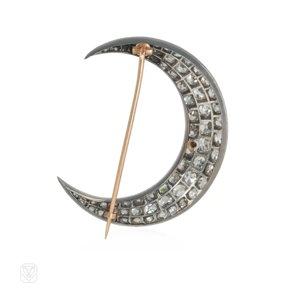 Antique diamond crescent moon brooch