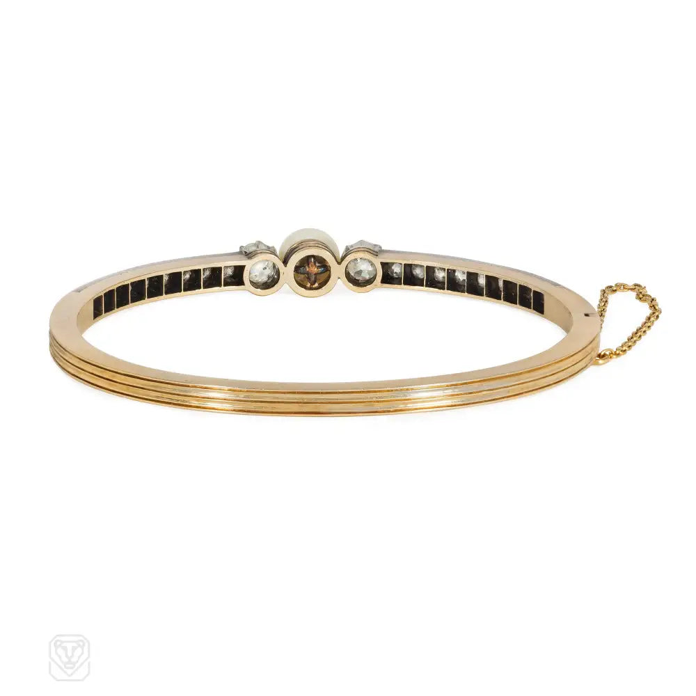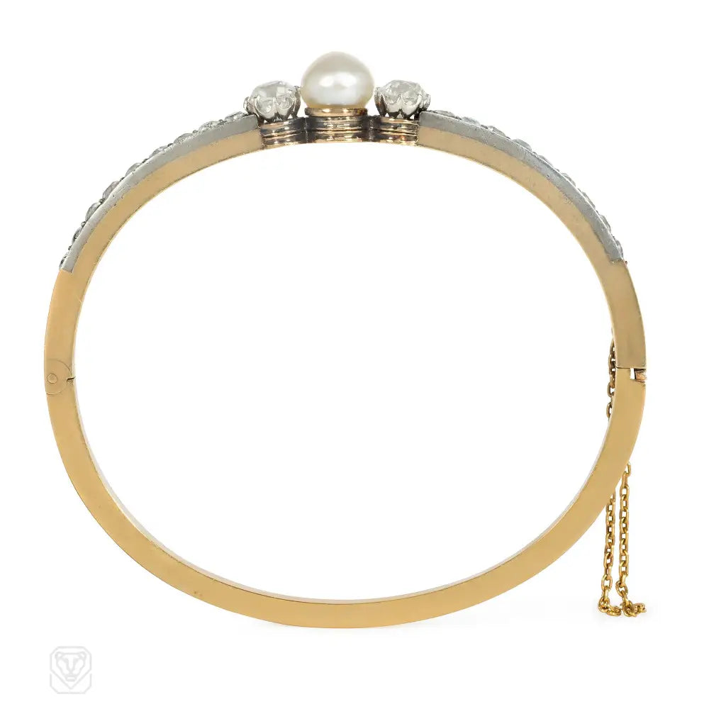 French antique pearl and diamond bangle bracelet