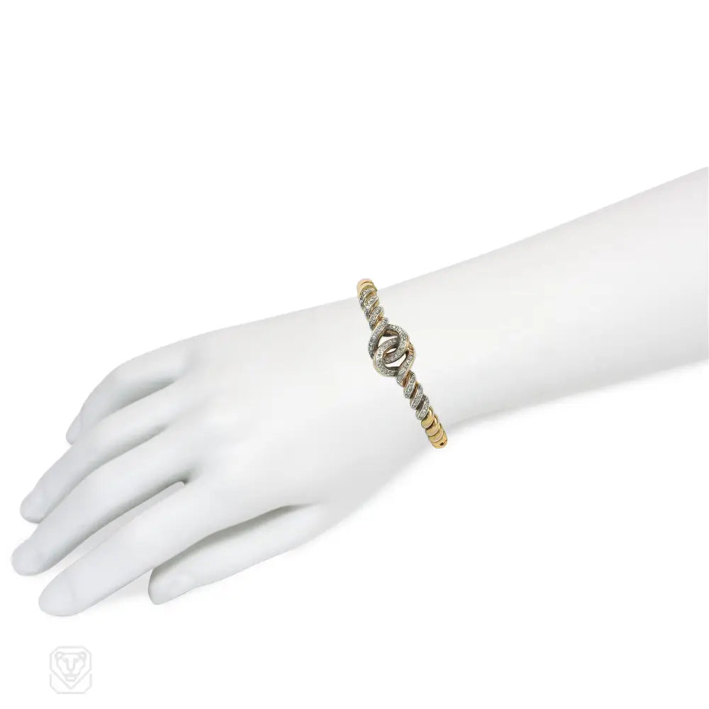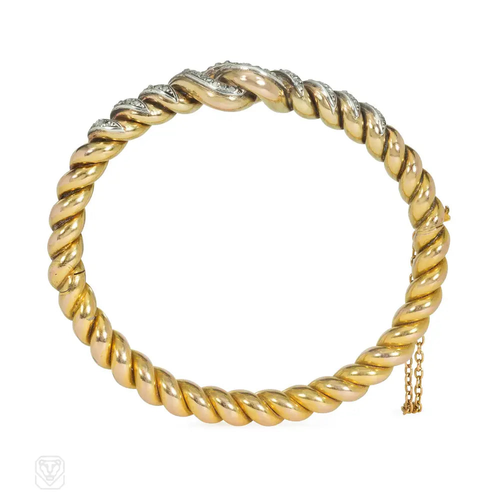 An antique gold and rose diamond bracelet of twisted, interlocking design, in 18k. France