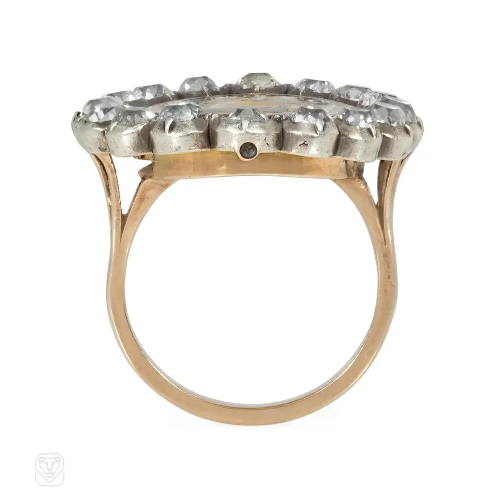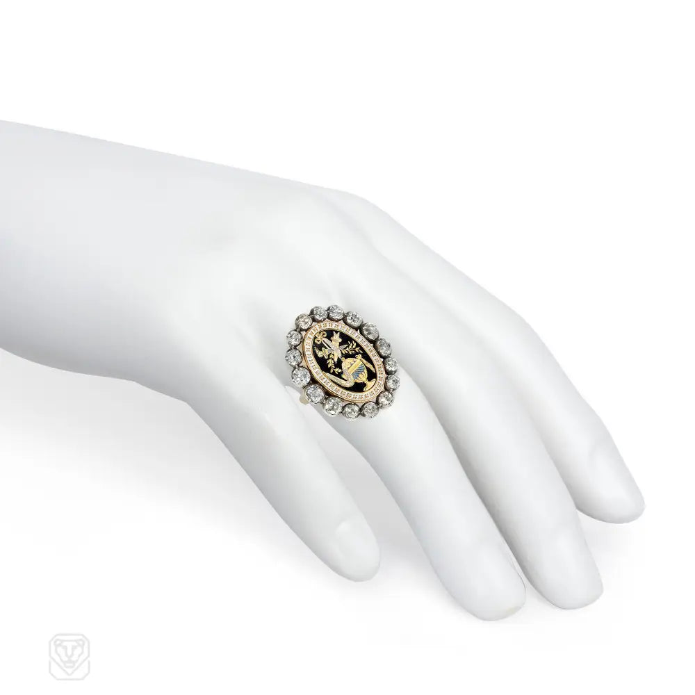An enamel and diamond Georgian element mounted as a ring