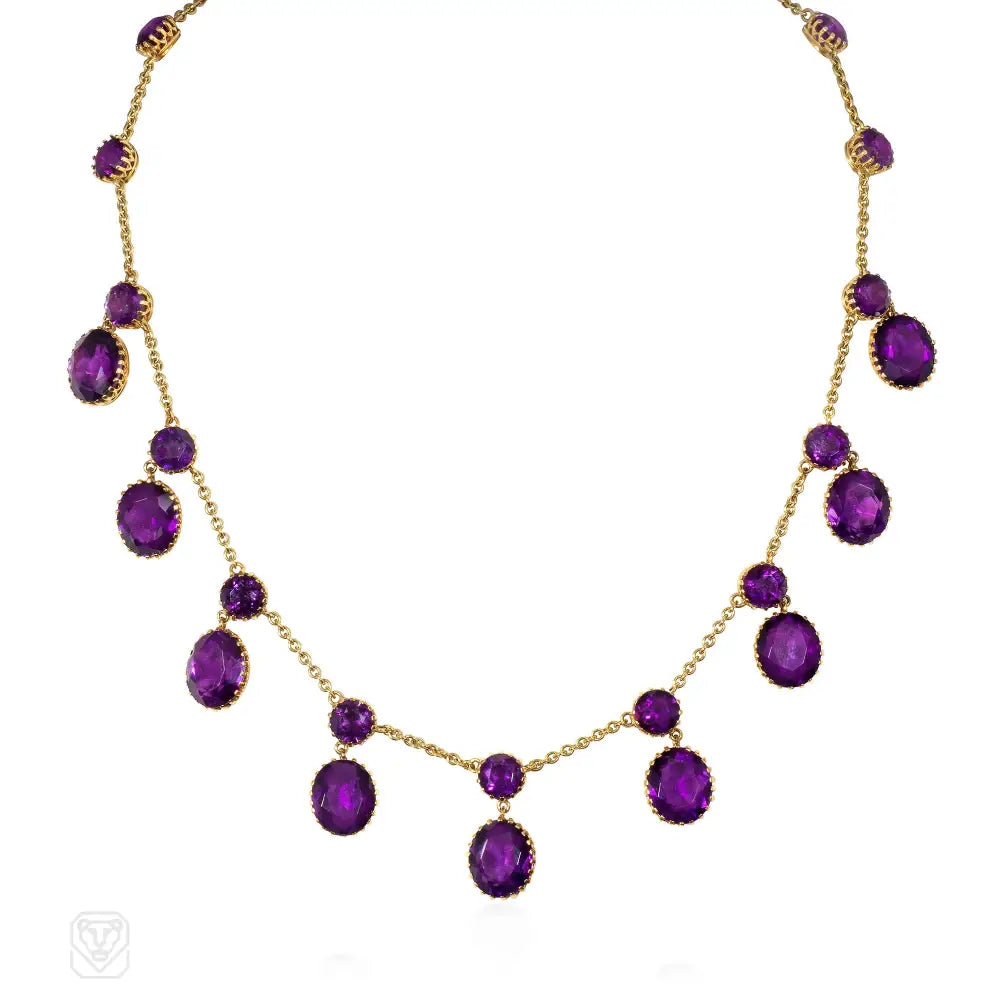 A Victorian amethyst fringe pendant necklace, in 18k gold. Atw 45cts