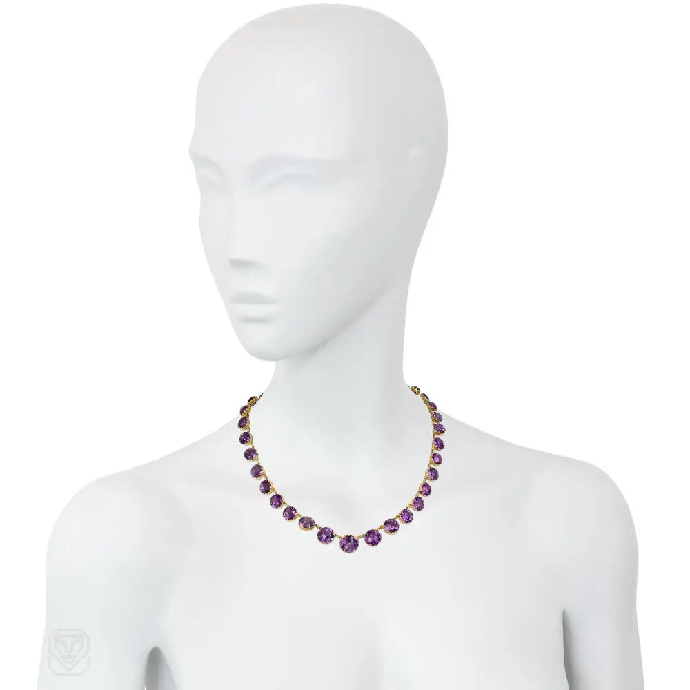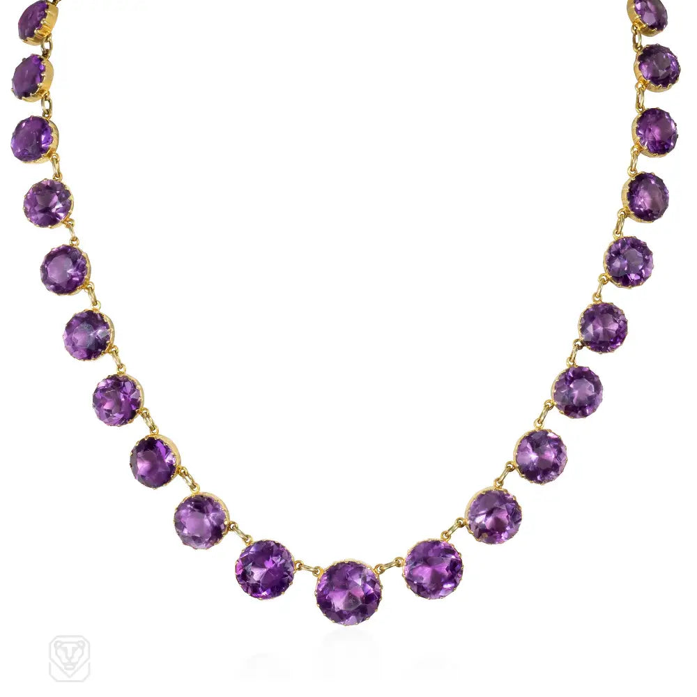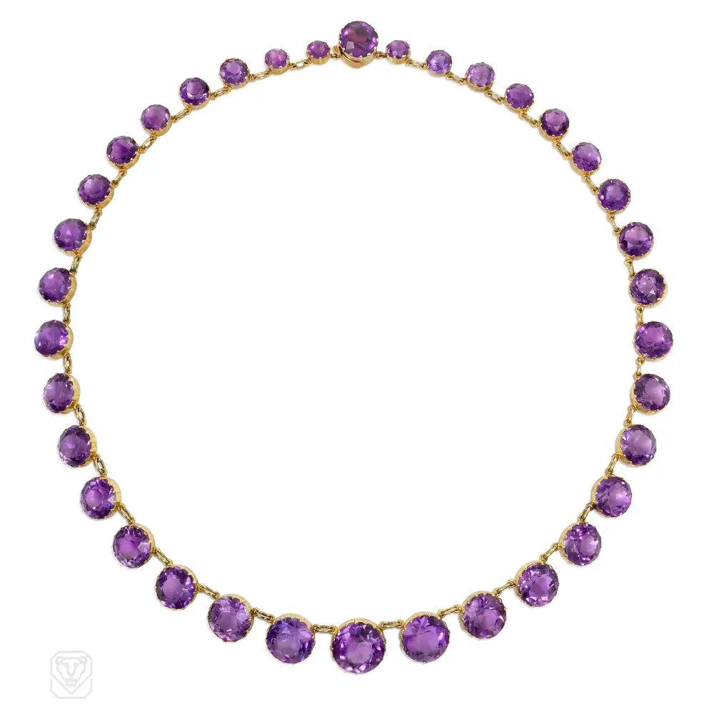 A Victorian amethyst, graduated rivière necklace, in 15k gold.