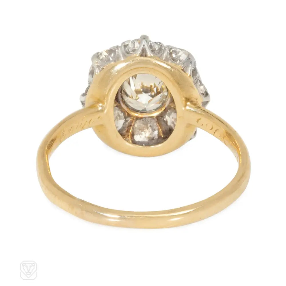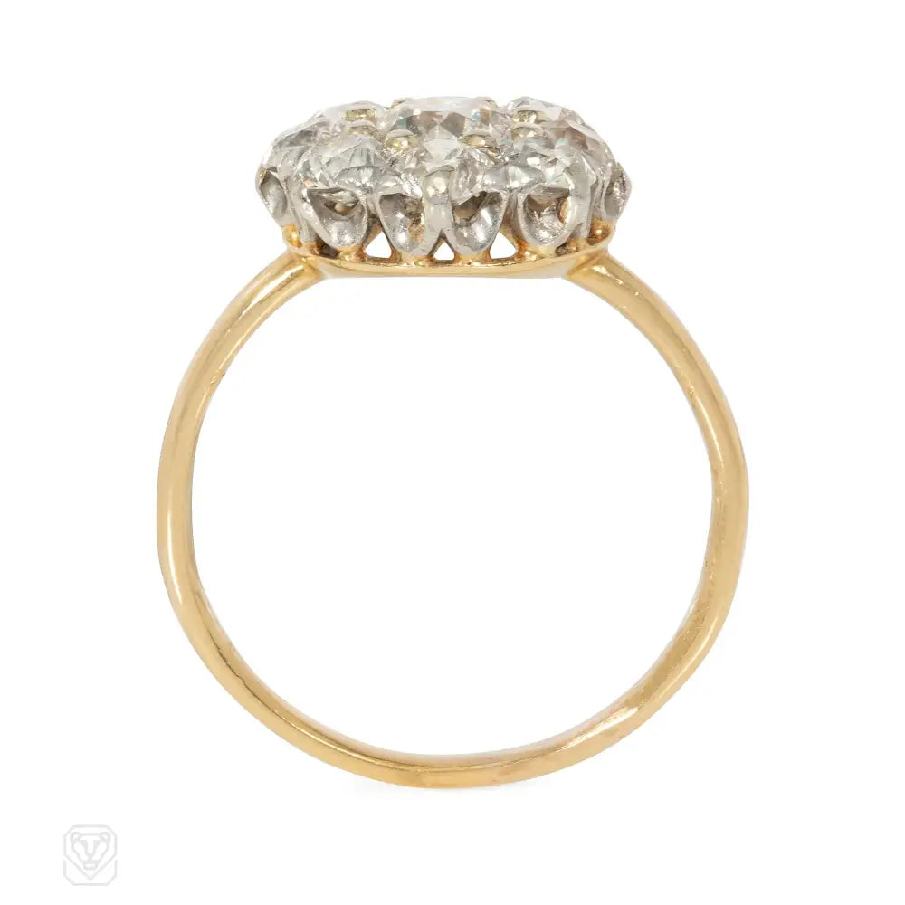 An Edwardian gold and diamond cluster ring, in 14k and platinum. Tiffany & Co. Atw diamonds 1.30 cts (center stone 0.50 ct)..