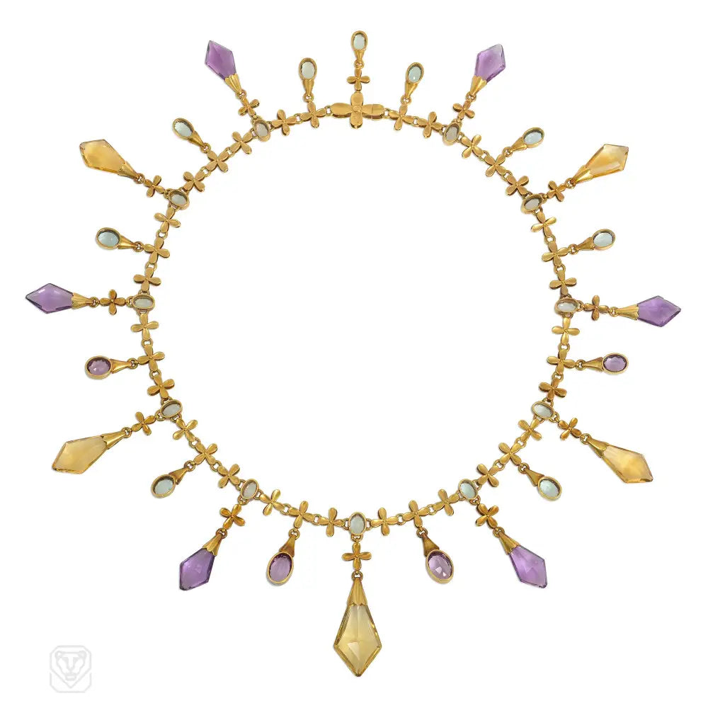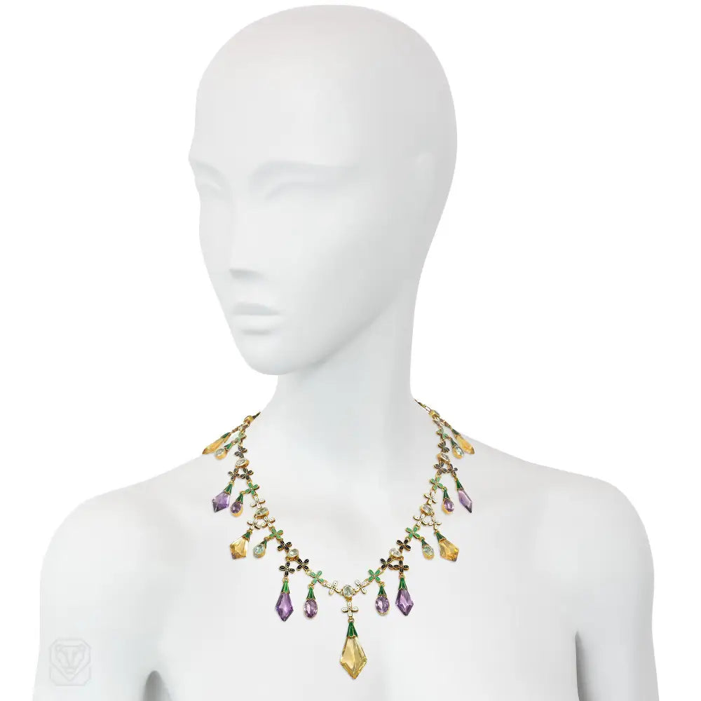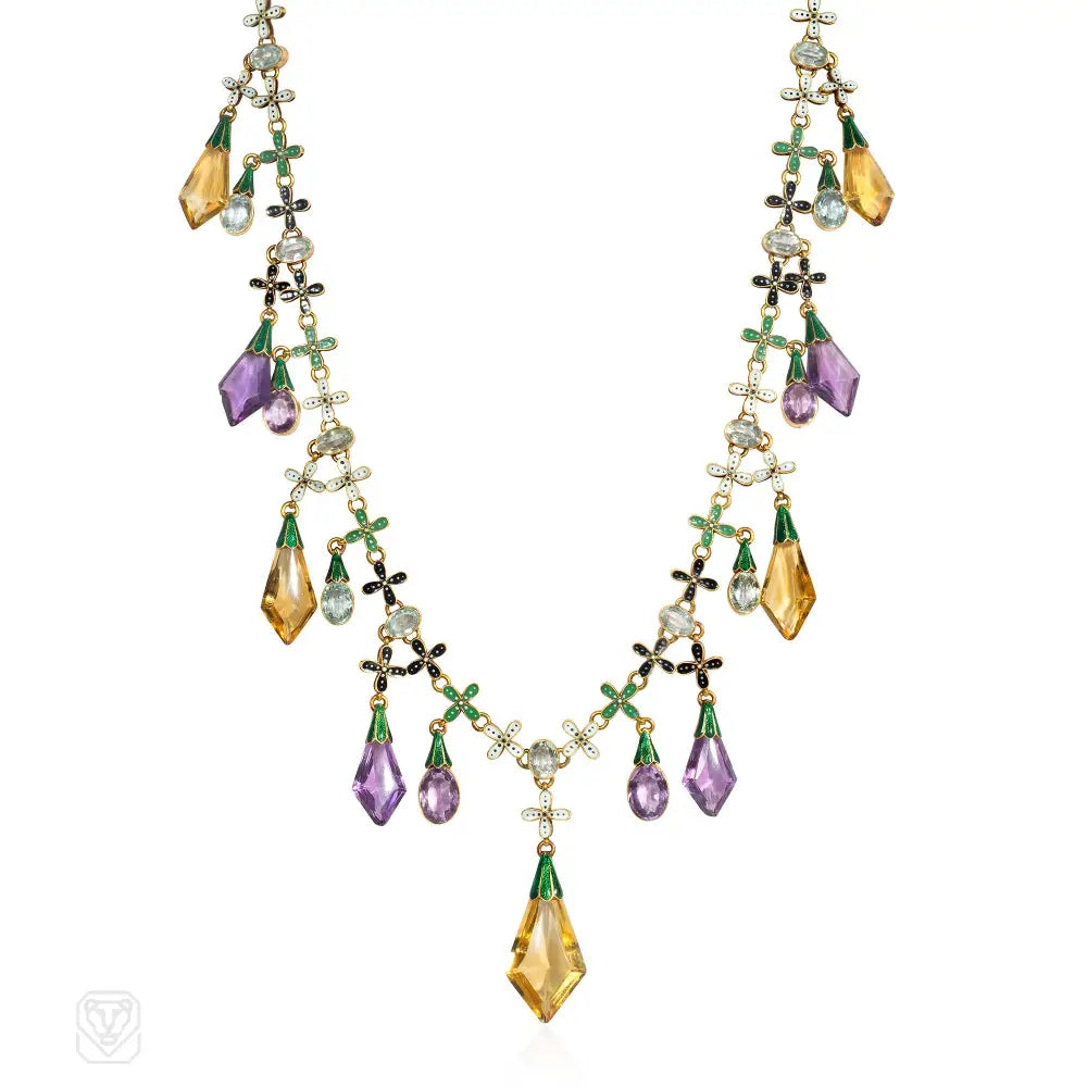 Important antique Carlo Giuliano multi-gem, enamel, and gold necklace