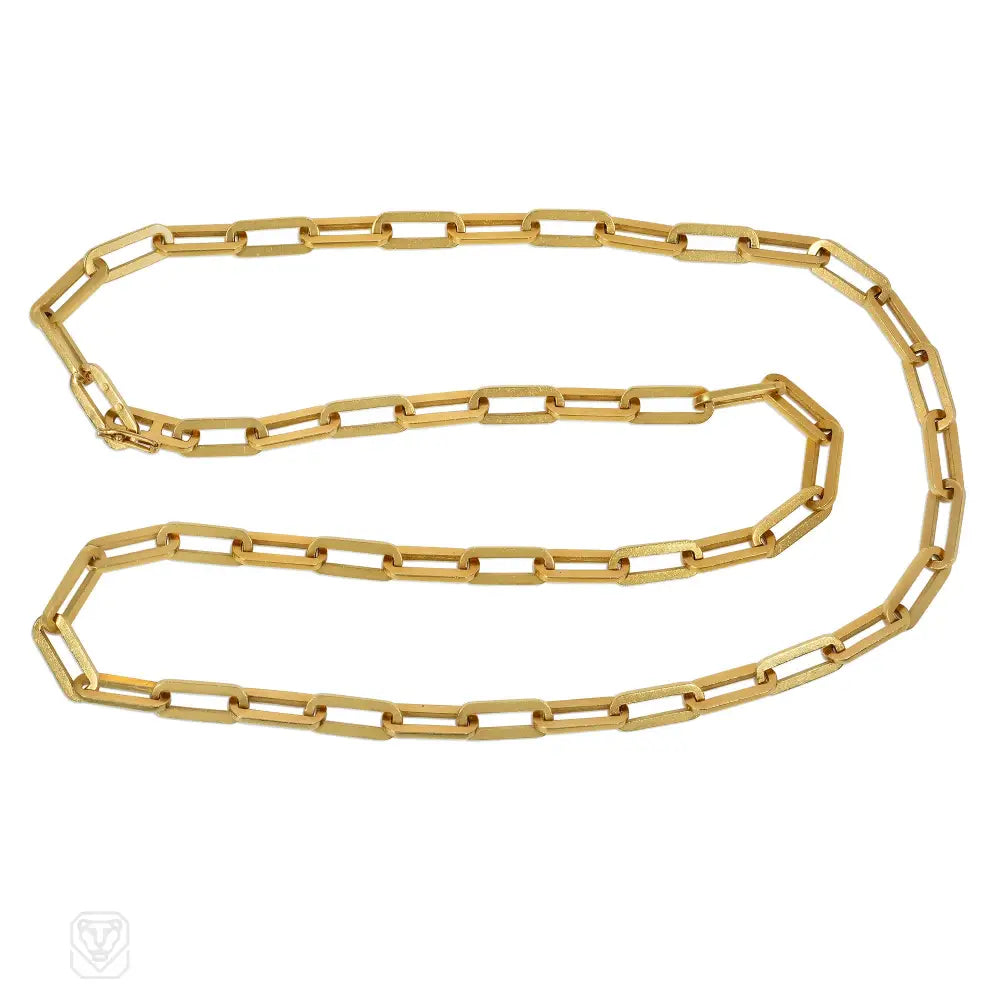 A gold chain necklace of paper-clip links, in 18k. Morocco, French import marks.